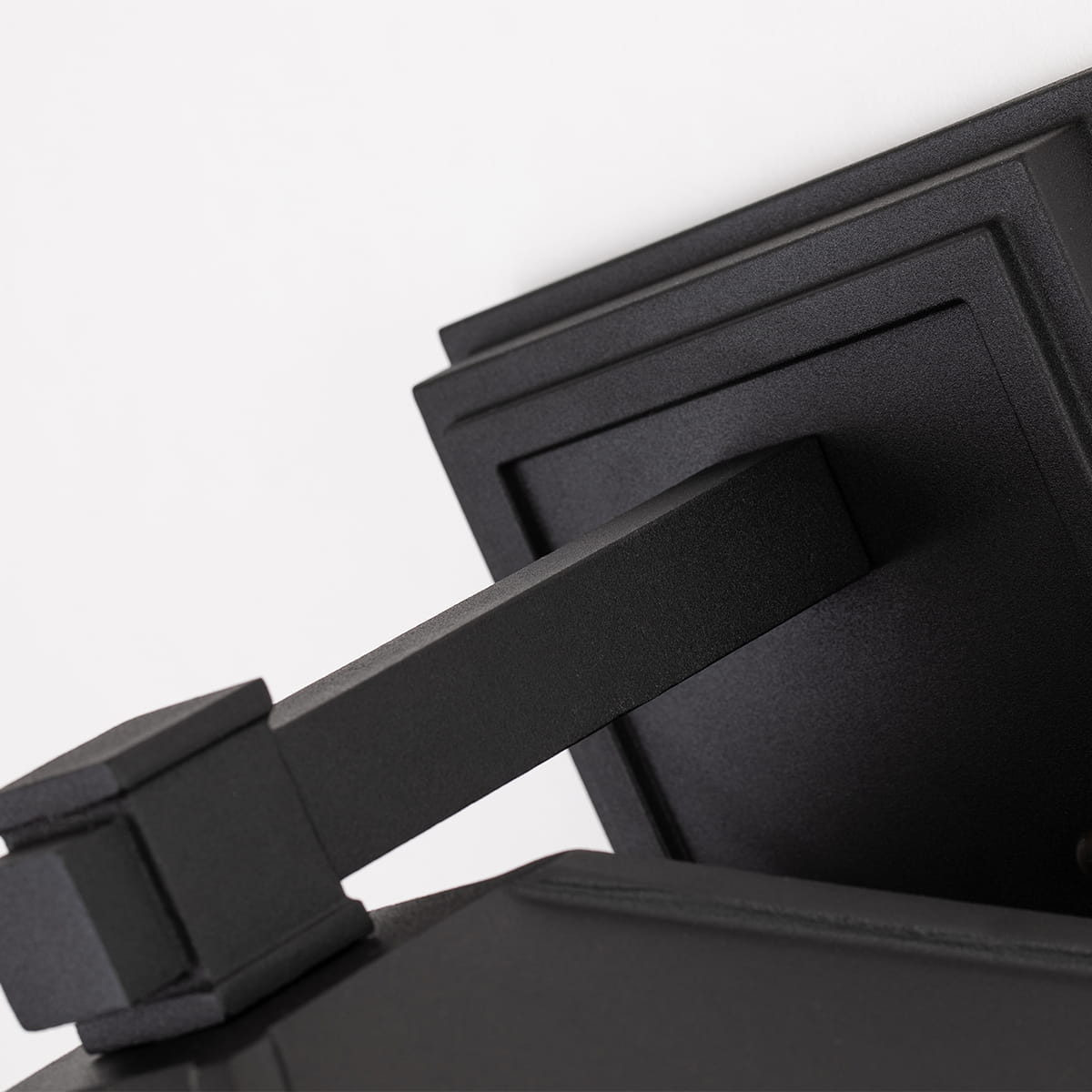 Odkryj świat elegancji z dużą latarnią naścienną Cedar Point marki Elstead Lighting, która wprowadza rustykalny urok do Twojego zewnętrznego otoczenia. Ponadczasowa stylistyka w subtelnej czerni sprawia, że latarnia staje się harmonijnym dodatkiem do każdego domu. Dzięki szybie ozdobionej delikatnymi pęcherzykami powietrza, światło rozchodzi się w sposób, który tworzy przytulną, a jednocześnie wyrafinowaną atmosferę.