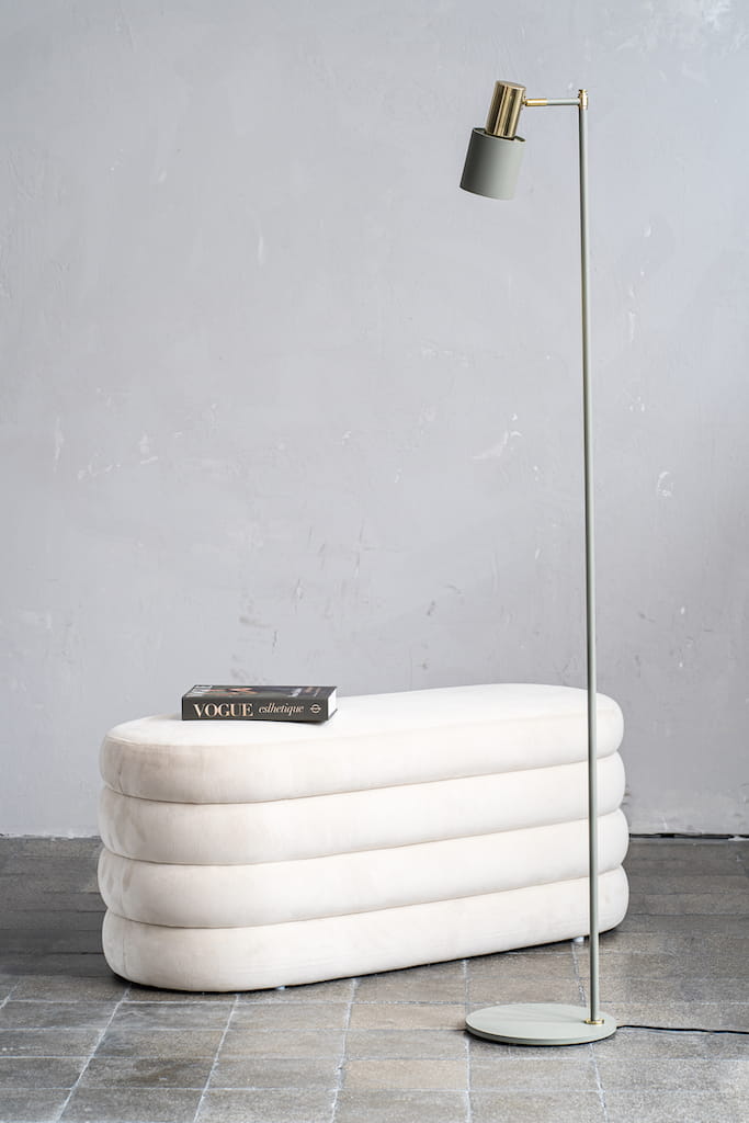 Przestrzeń Twojego domu zasługuje na światło, które nie tylko rozprasza mrok, ale także nadaje jej charakteru. Lampa Podłogowa Doria Argon to coś więcej niż zwykły element wyposażenia – to osobowość, która wprowadza do wnętrza niepowtarzalny klimat. Niczym artystyczna instalacja, jej szałwiowy odcień połączony z mosiądzem przyciąga uwagę, jakby opowiadała własną historię w Twoim salonie.
