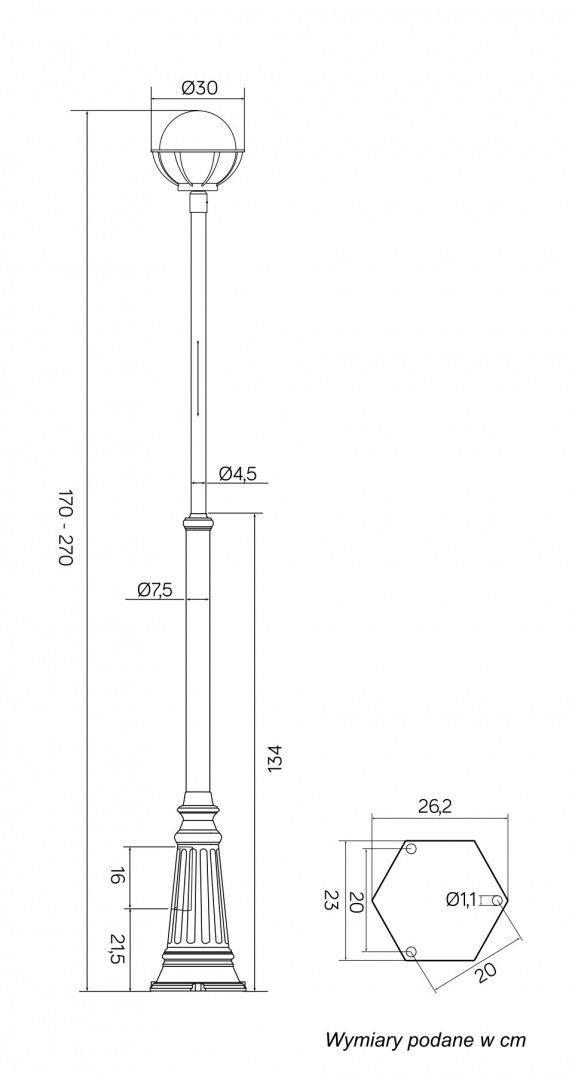 Lampa ogrodowa kula Kule z koszykiem 250 OGMWN 1 KPO 250 SU-MA to doskonałe rozwiązanie dla tych, którzy cenią sobie stylowe i funkcjonalne oświetlenie przestrzeni zewnętrznych. Zaprojektowana z myślą o zastosowaniu w ogrodach, na tarasach oraz w innych miejscach wymagających subtelnego podkreślenia architektury świetlnej.
