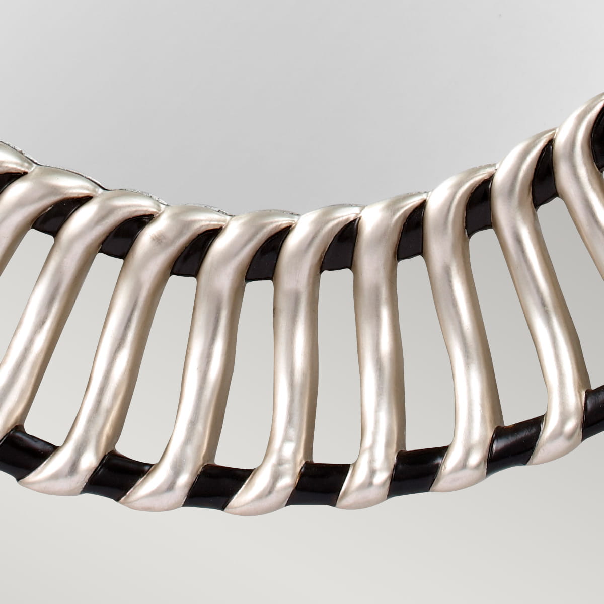 Lampa Cosmo wykonana jest z wysokiej klasy metalu o pięknym, srebrnym wykończeniu, które subtelnie odbija światło, dodając pomieszczeniu wyjątkowej głębi. Jej minimalistyczne wzornictwo dopasowuje się do każdej aranżacji, zarówno klasycznej, jak i nowoczesnej, stając się niezastąpionym elementem w przestrzeniach wymagających dobrego, a zarazem eleganckiego akcentu.