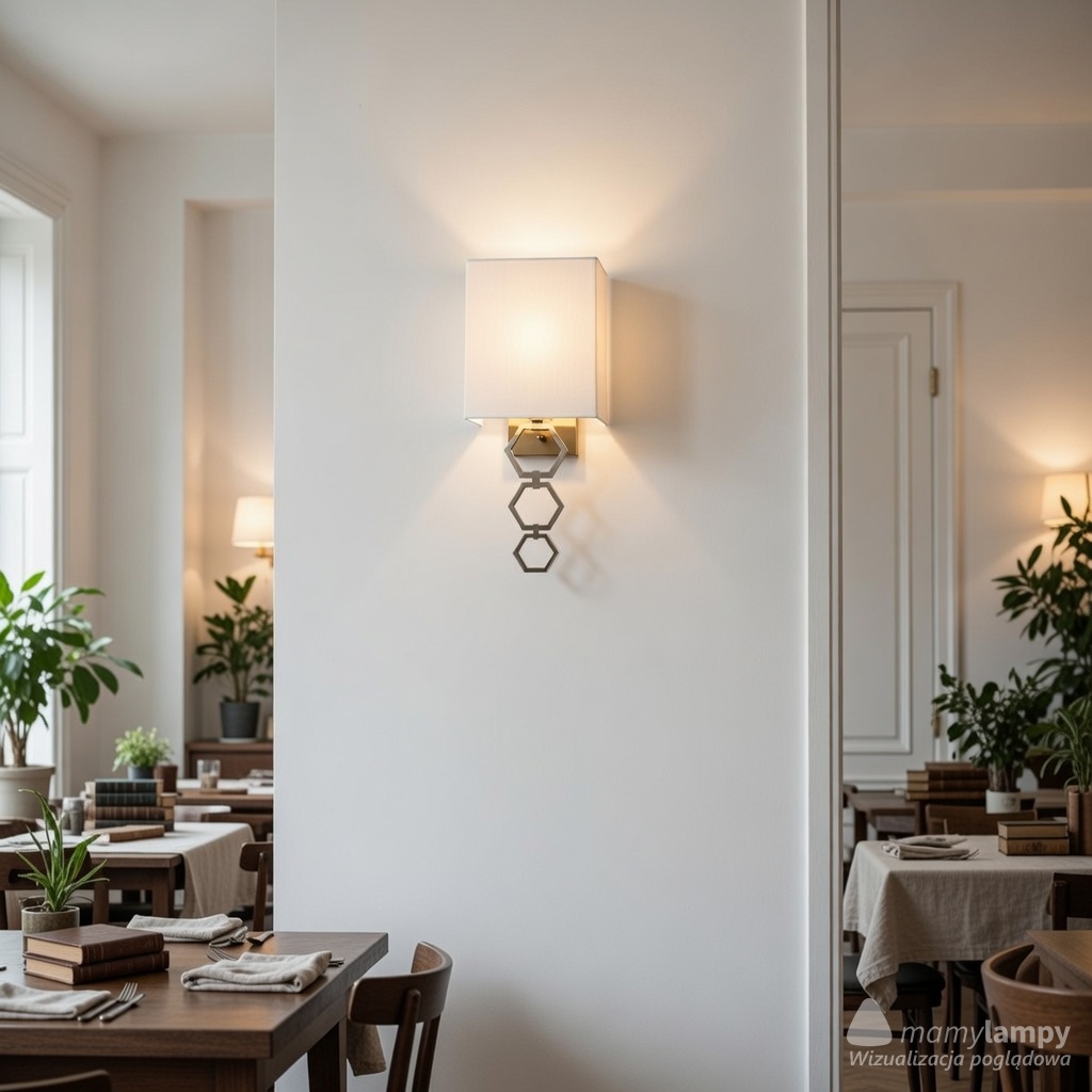 Cechą wyróżniającą tej lampy jest klosz o półprostokątnym kształcie, starannie wykonany z materiału imitującego jedwab. Ta unikalna konstrukcja sprawia, że światło jest miękkie i rozproszone, tworząc przytulną atmosferę o kolorze kości słoniowej w Twoim domu. Wyjątkowy kształt klosza to efekt misternej pracy ręcznej, co dodaje kinkietowi jeszcze więcej unikalnego charakteru.