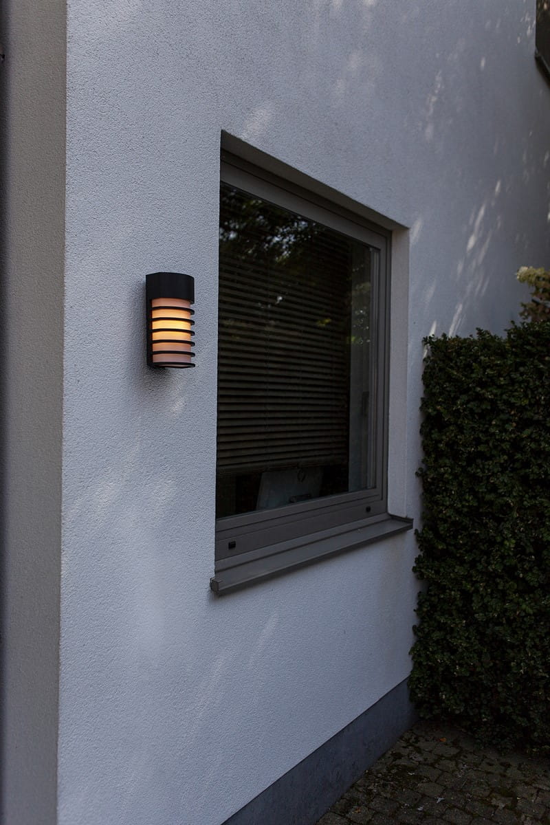 Kinkiet o wymiarach 24,3 cm wysokości, 13 cm szerokości i 10 cm głębokości, został zaprojektowany w nowoczesnym stylu, co pozwala na jego łatwe wkomponowanie w różnorodne aranżacje zewnętrzne. Jego czarny kolor nadaje elegancki i ponadczasowy charakter, dzięki czemu będzie on pasować do wielu elewacji i ogrodowych przestrzeni.