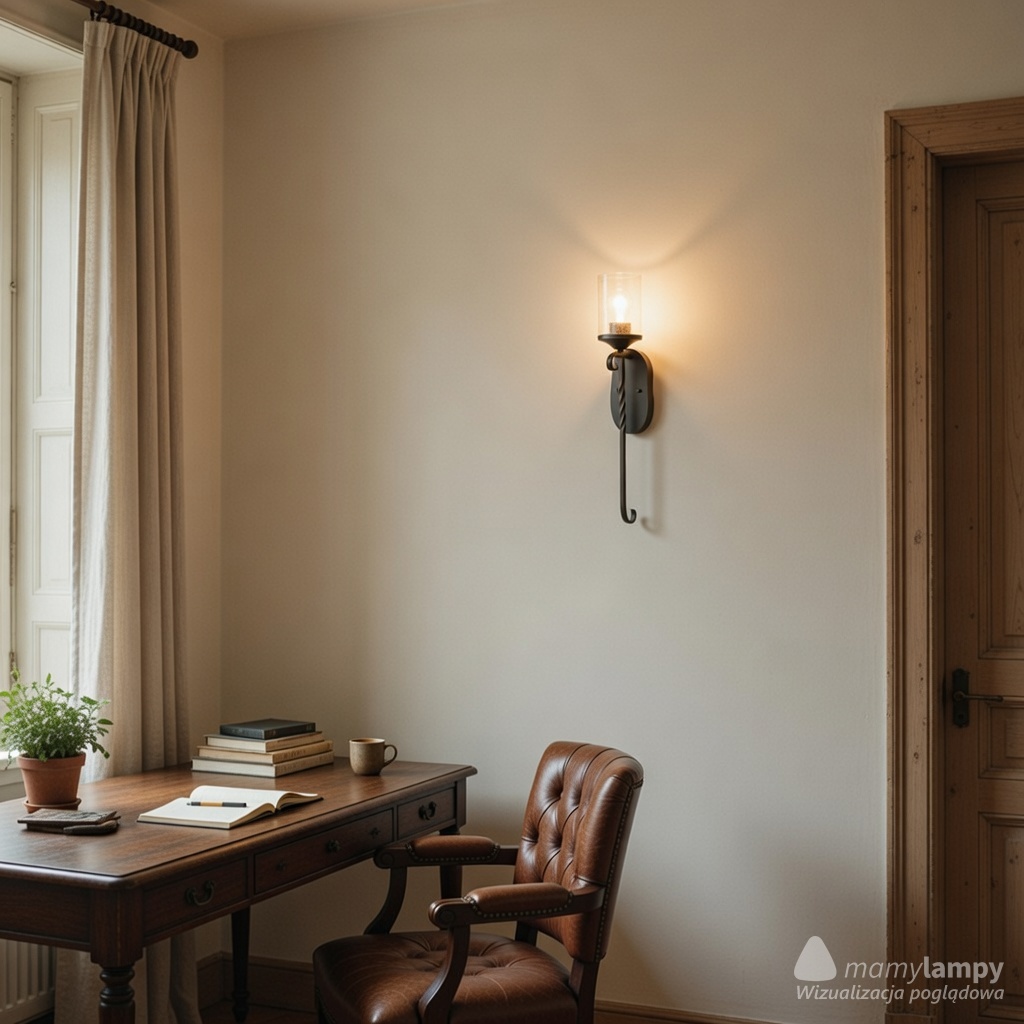 Solidna konstrukcja, wzbogacona o postarzaną czerń, nadaje lampie wyjątkowego charakteru, łączącego w sobie nowoczesność z nutą klasyki. W połączeniu z subtelnym efektem świetlnym, kinkiet tworzy atmosferę ciepła i przytulności, o której marzy każdy właściciel eleganckiego wnętrza. Bąbelki powietrza zatopione w szkle to innowacyjny detal, dodający głębi i niepowtarzalnego uroku każdemu zaświeceniu.