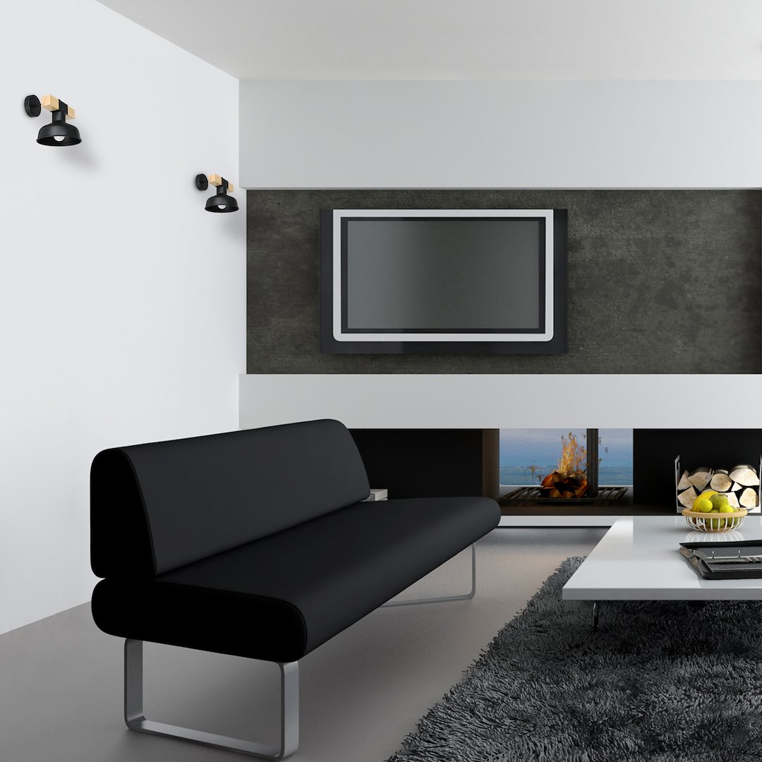 Wykonana z wysokiej jakości metalu oraz naturalnego drewna konstrukcja charakteryzuje się nie tylko estetyką, ale również trwałością. Czarna powierzchnia metalowej części lampy subtelnie kontrastuje z ciepłym odcieniem drewna, tworząc przyjemną dla oka kompozycję kolorystyczną. Materiałowa kombinacja zapewnia solidność konstrukcji przy zachowaniu lekkiego wyglądu (waga: 0.82 kg), co czyni lampę łatwą do zamontowania na dowolnej ścianie.