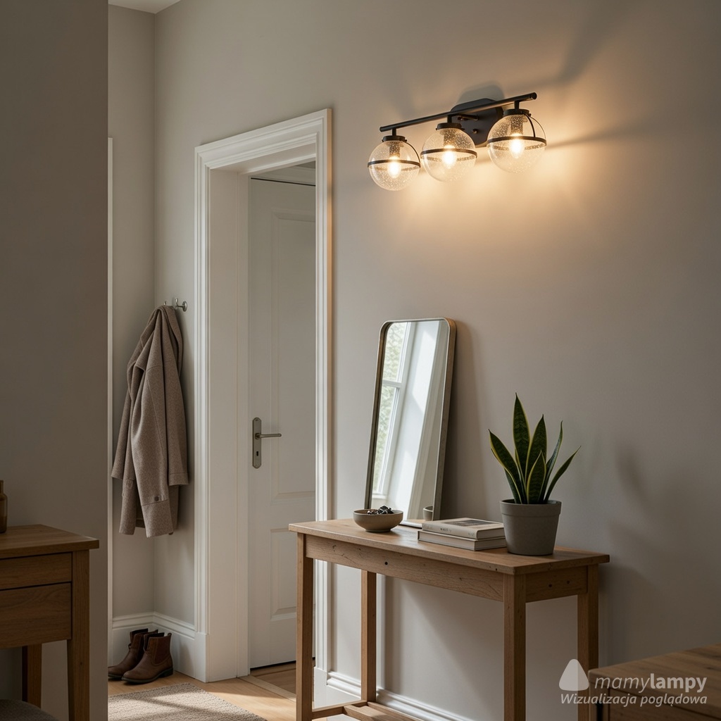Trzy źródła światła z gwintem E14 o mocy do 60 W każda pozwalają na równomierne rozświetlenie pomieszczenia, co jest nie do przecenienia w wymagających przestrzeniach. Doskonale nadaje się do wnętrz łazienkowych, co potwierdza klasa szczelności IP44, gwarantująca odporność na podwyższoną wilgotność. To oświetlenie jest nie tylko piękne, ale również zaprojektowane tak, by sprostać wyzwaniom codziennego użytkowania.