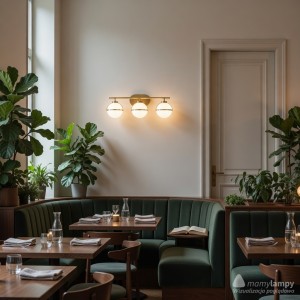 Centralnym punktem lampy są wyjątkowe klosze wykonane ze szkła z bąbelkami powietrza, które subtelnie rozpraszają światło, tworząc zjawiskowy efekt wizualny. Ta unikalna cecha sprawia, że lampa nie tylko spełnia funkcję praktyczną, ale staje się również olśniewającym elementem dekoracyjnym. Za oświetlenie odpowiadają trzy oprawy typu E14, o mocy do 60 W każda, co daje możliwość doboru żarówek według indywidualnych preferencji, umożliwiając stworzenie odpowiedniego nastroju.