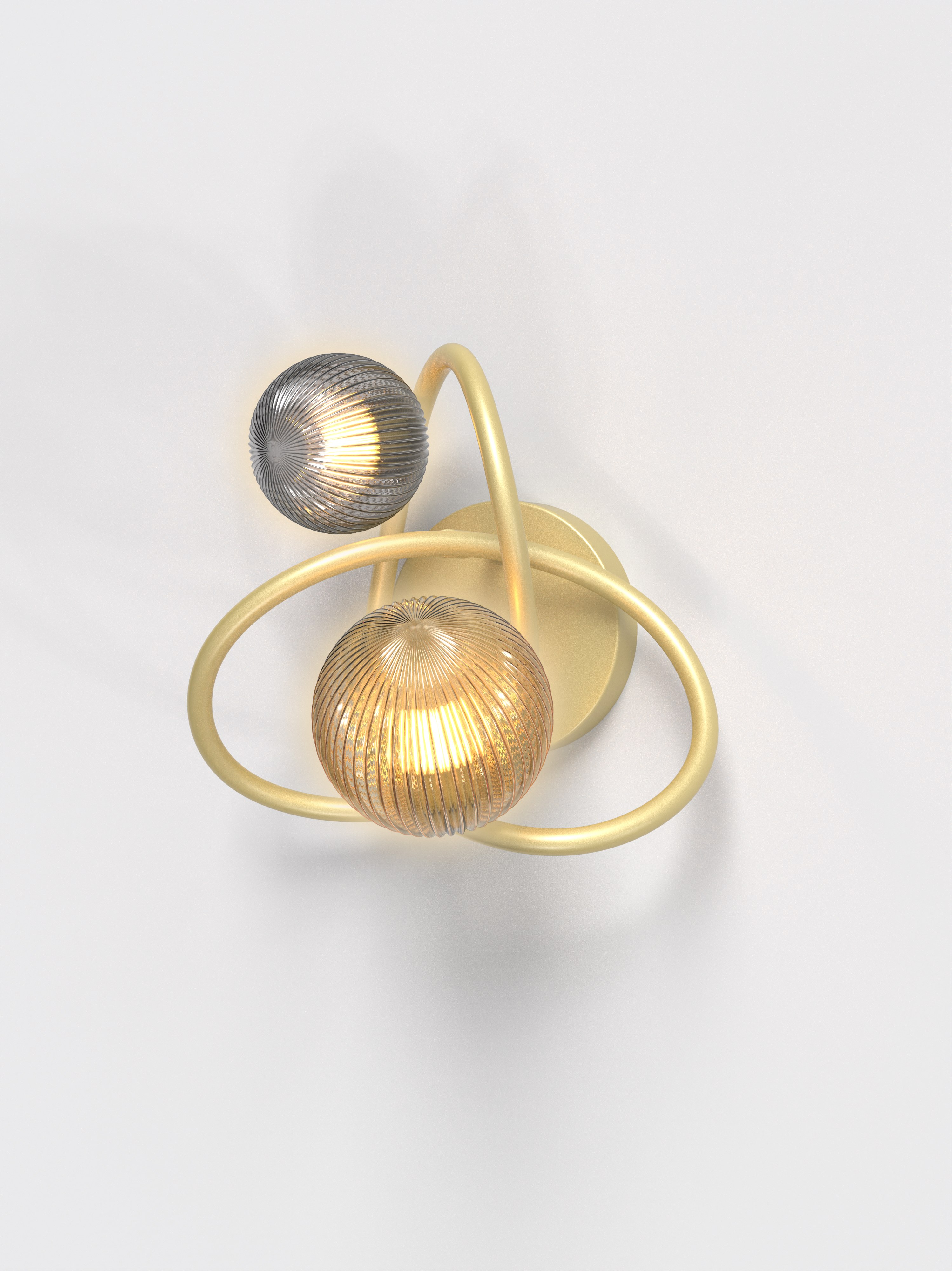 Kinkiet posiada klosze w odcieniach bursztynowym i dymionym, które tworzą ciepłą i przytulną atmosferę w każdym pomieszczeniu. Złoty kolor konstrukcji nadaje lampie dodatkowego uroku i klasy. Dzięki wymiarom szerokość 27 cm i wysokość 25 cm, idealnie pasuje do większości przestrzeni wewnętrznych takich jak sypialnia, salon czy biuro.