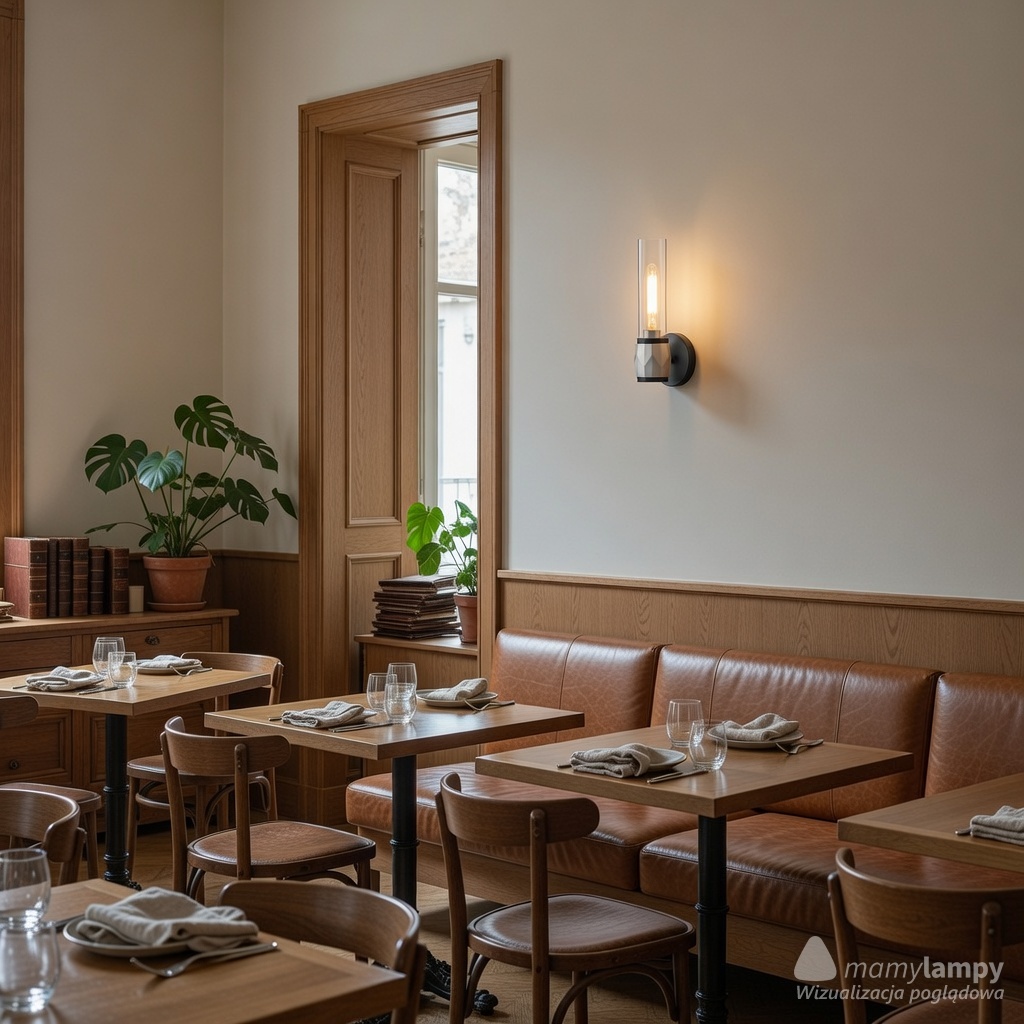 Produkt wykonany jest z wysokiej jakości stali oraz przezroczystego szkła, co gwarantuje długotrwałość oraz estetykę wykonania. Czarny kolor stelaża w połączeniu z srebrnymi akcentami nadaje lampie eleganckiego wyglądu, który wpisze się zarówno w nowoczesne jak i bardziej tradycyjne aranżacje łazienek. Lampa oferuje szerokie możliwości zastosowania nie tylko w domowych wnętrzach ale również w przestrzeniach komercyjnych takich jak hotele czy spa.