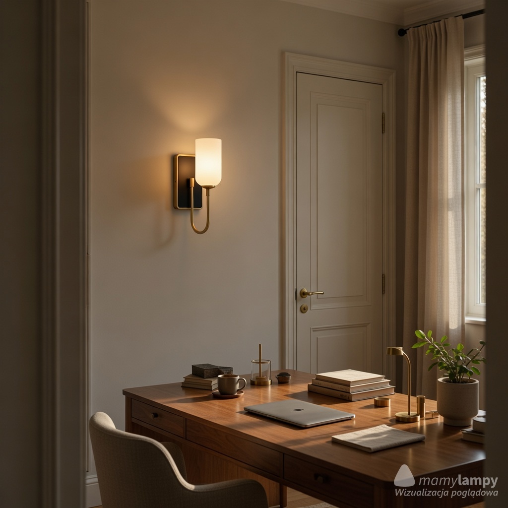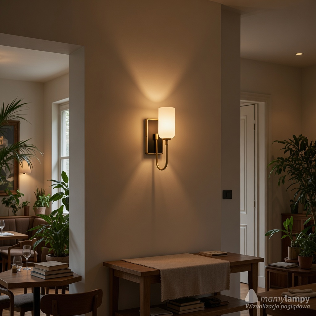 Konstrukcja lampy wykonana została z wysokiej jakości stali, co zapewnia trwałość i odporność na korozję. Elegancki design w połączeniu ze złotymi i czarnymi wykończeniami dodaje wnętrzu luksusowego charakteru. Szkło opalowe rozpraszające światło tworzy miękki i przyjemny dla oka efekt, jednocześnie dostarczając wystarczającą ilość światła (300 lm) do codziennych czynności.