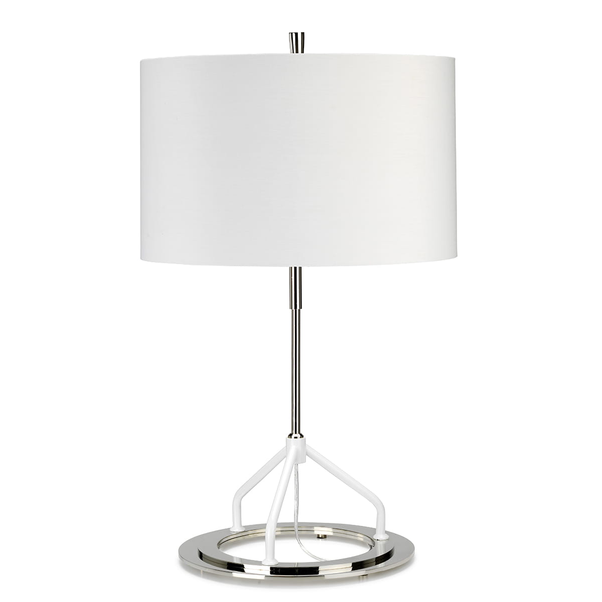 Wysokość 65 cm oraz średnica klosza wynosząca 40 cm sprawiają, że lampa jest imponująca, ale nie przytłacza przestrzeni. To doskonale zaprojektowana konstrukcja, która z pewnością przyciągnie uwagę bez konieczności dominowania w aranżacji wnętrza. Czysta biel i połysk chromu współgrają z różnymi paletami kolorystycznymi, stając się uniwersalnym dodatkiem do salonu, sypialni czy korytarza.