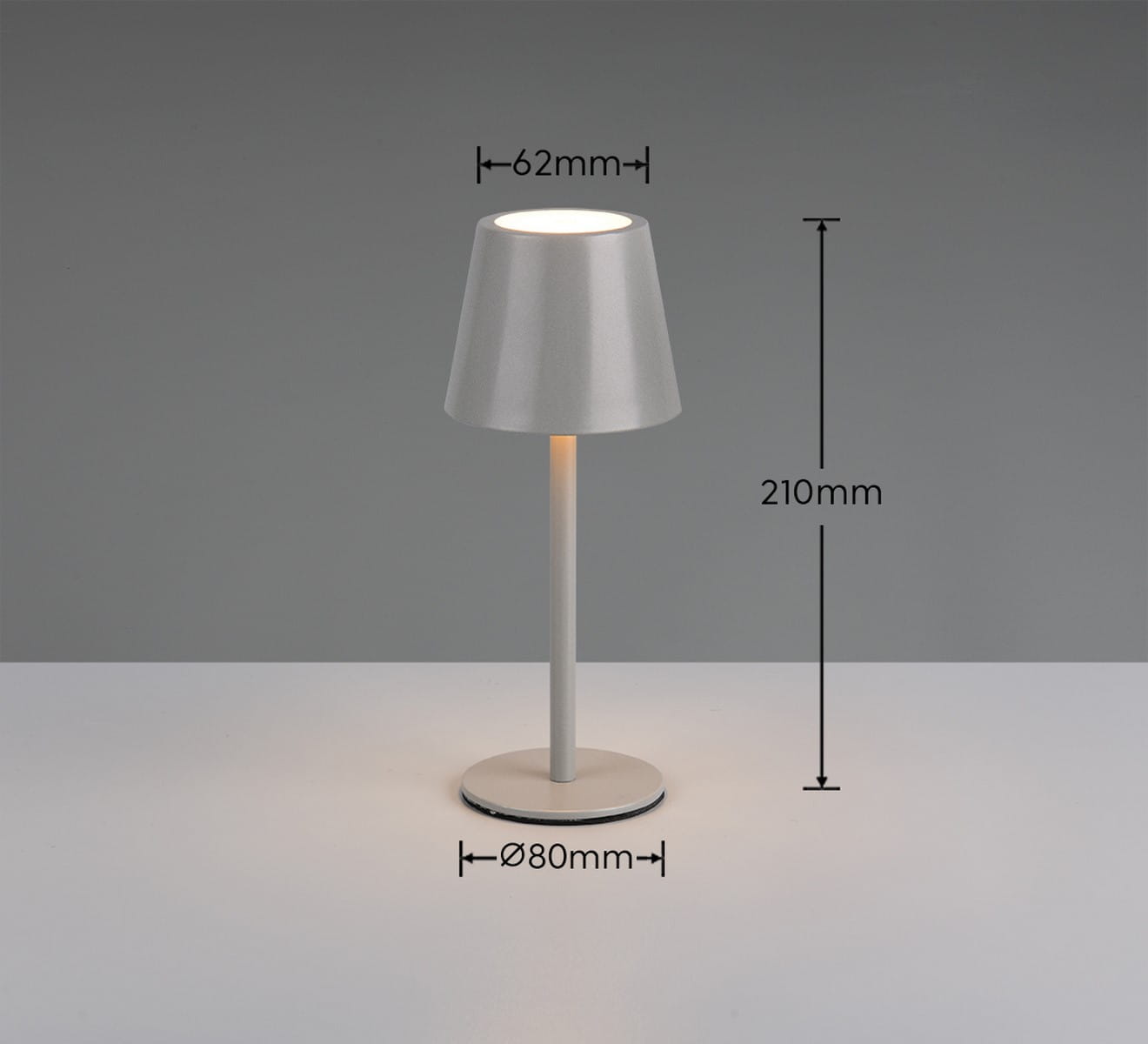 Ta lampa stołowa wyróżnia się kompaktowymi wymiarami: wysokość wynosi 21 cm, a średnica podstawy to jedynie 8,5 cm. To sprawia, że bez trudu można ją ustawić nawet na niewielkich powierzchniach roboczych czy stolikach nocnych. Waga lampy to jedynie 0,4 kg, co ułatwia jej przestawianie oraz transport.