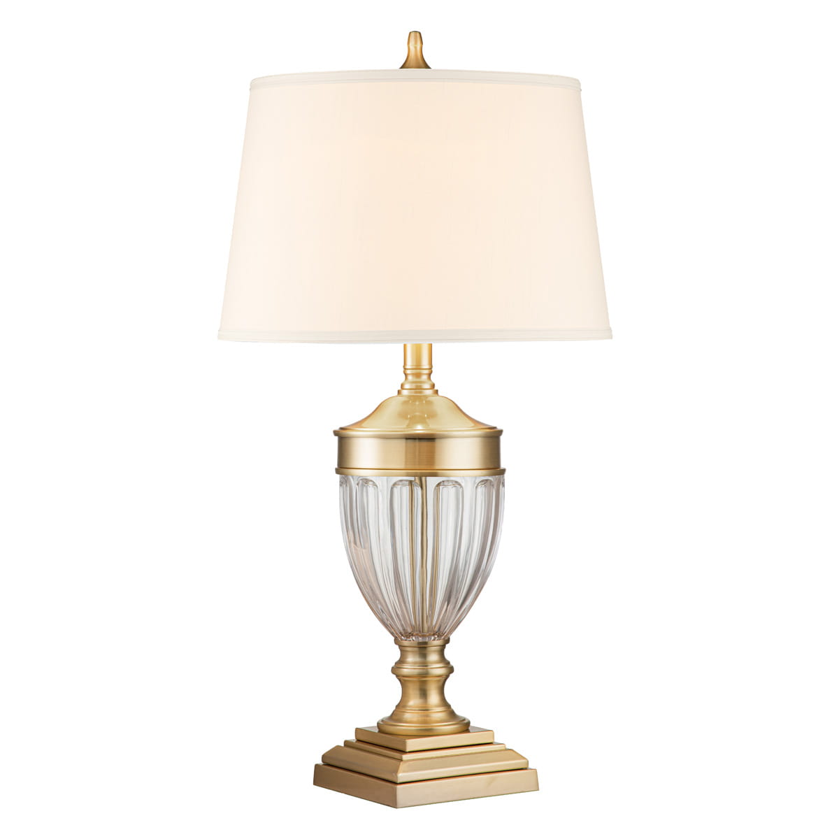 Lampa stołowa Dennison Elstead Lighting 1xE27 100 W Stal, Szkło, Len Szczotkowany mosiądz