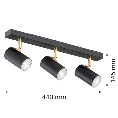 Lampa sufitowa Lampa reflektorowa Lagos 1476 Argon 3xGU10 5W Stal Lakierowana/ Stal Mosiądzowana, Czarny / Mosiądz