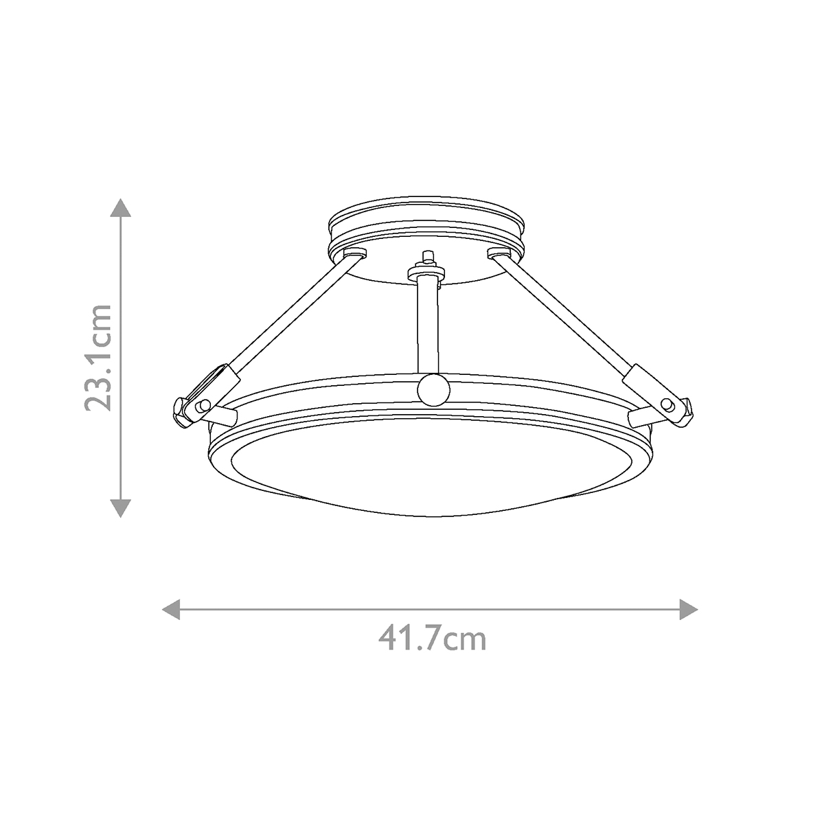 Dzięki wymiarom (41.7 cm średnicy i 23.1 cm wysokości) lampa idealnie sprawdzi się w różnorodnych aranżacjach bez dominowania nad pozostałymi elementami wystroju. Waga wynosząca jedynie 2 kg ułatwia montaż i adaptację w różnych lokalizacjach.