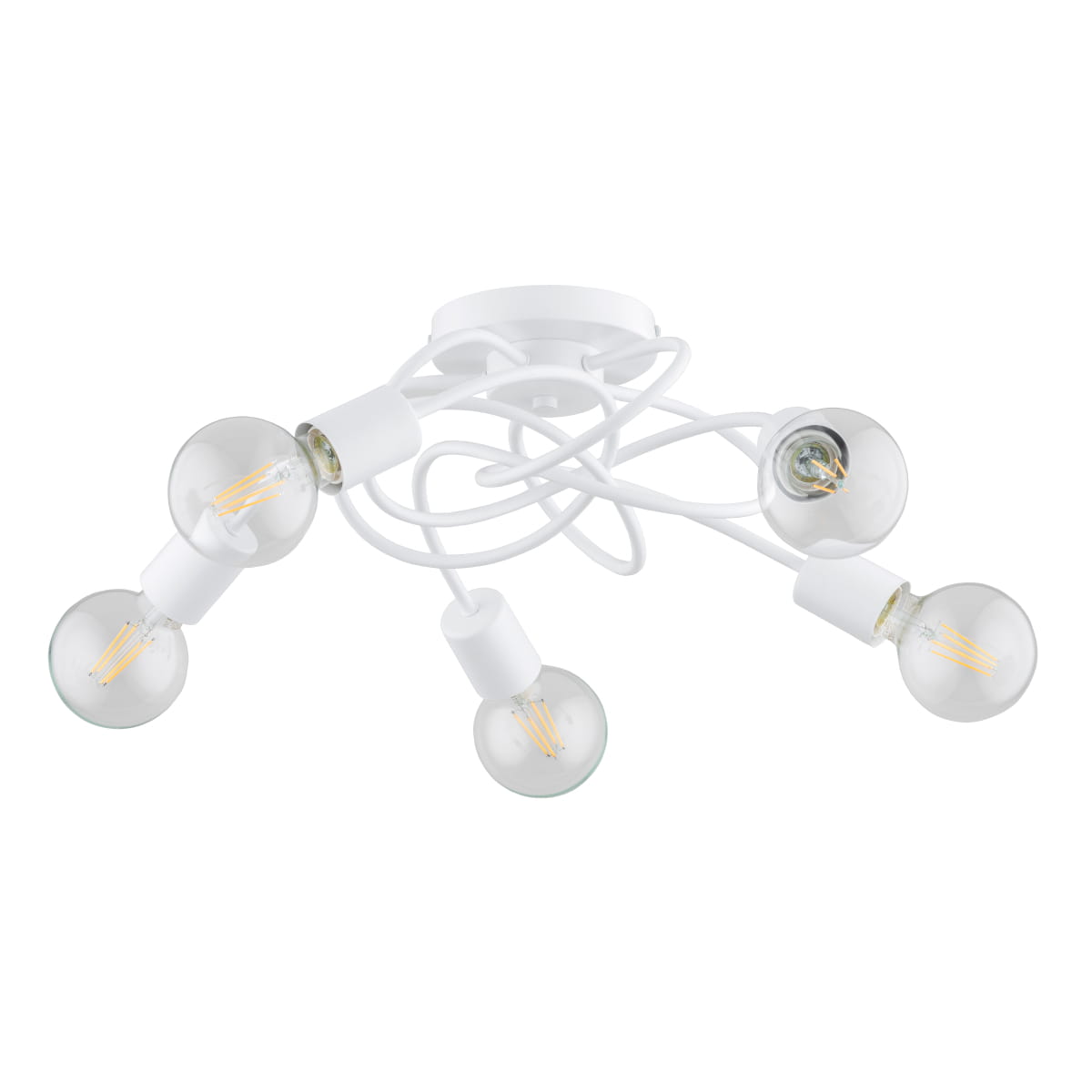 Zastosowanie żarówek E27 LED gwarantuje nie tylko energooszczędność, ale także trwałość użytkowania – możesz cieszyć się przyjemnym światłem bez obaw o rachunki za prąd czy częste wymiany źródeł światła. Pięć punktów świetlnych równomiernie rozprasza światło w pomieszczeniu, co sprawia że idealnie nadaje się zarówno do większych salonów, jak i bardziej kameralnych sypialni.