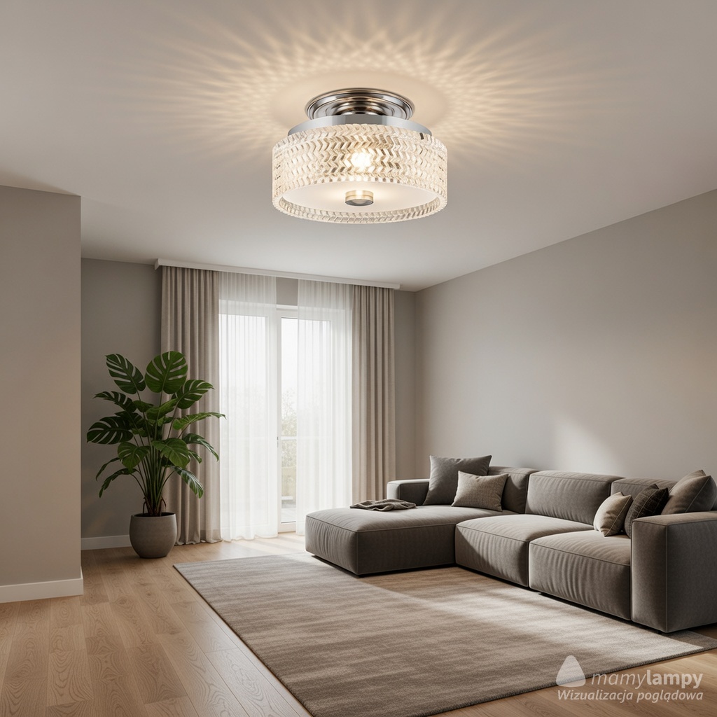 Oprócz funkcji praktycznych plafon ten stanowi również piękny element dekoracyjny – jego srebrzyste wykończenie razem ze szklanym kloszem dodają elegancji i szyku każdemu wnętrzu. Produkt harmonijnie współgra z różnorodnymi stylami wnętrzarskimi od minimalistycznych po bardziej rozbudowane dekoracje.