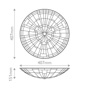 Lampa ma wymiary 40,7 cm średnicy i 15,1 cm wysokości, co czyni ją odpowiednią nawet dla wnętrz o ograniczonej przestrzeni sufitowej. Waży jedynie 2,9 kg, co ułatwia montaż oraz nie wymaga specjalnych wzmacniań konstrukcji sufitu.