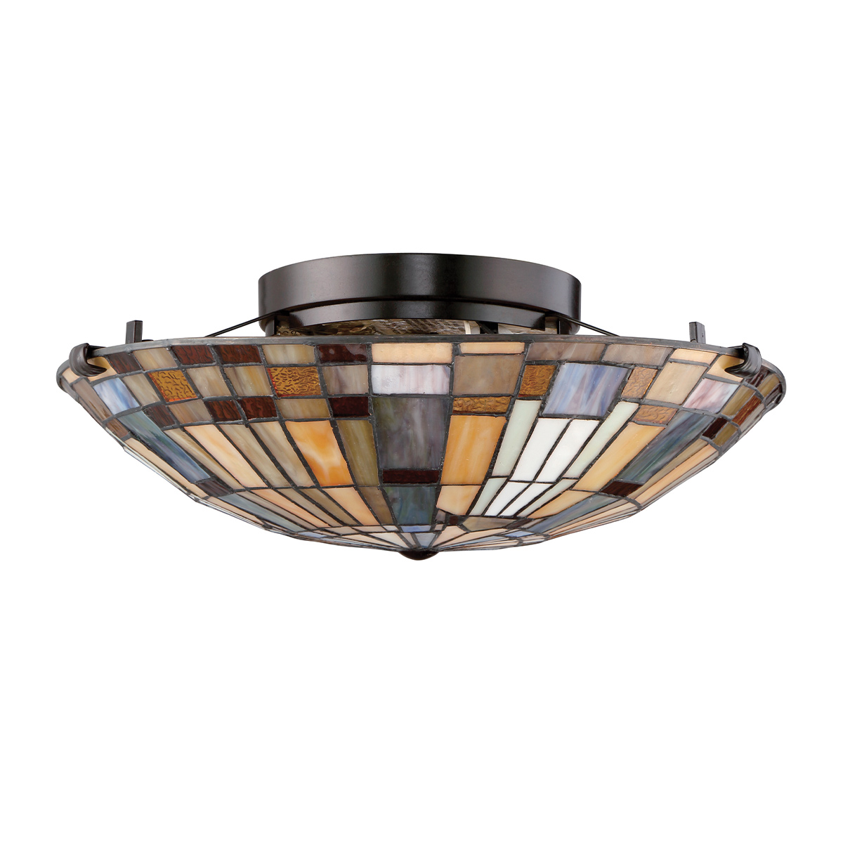 Lampa sufitowa Plafon Inglenook QZ-INGLENOOK-F-SMALL Elstead Lighting 2xE27 60W Stal, szkło artystyczne Brązowy
