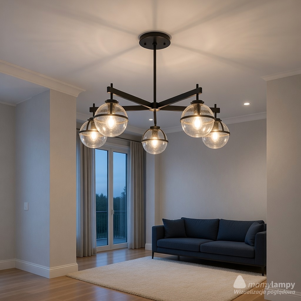Produkt dostępny jest w dwóch wariantach wykończenia – klasycznej czerni oraz eleganckim starym mosiądzu, co umożliwia dopasowanie do różnorodnych stylów i kolorów wnętrz. Kolejnym atutem są klosze, które możesz wybierać między delikatnym, białym matem a opcją z przeźroczystymi bąbelkami powietrza, które dodają całości niepowtarzalnego wyglądu.