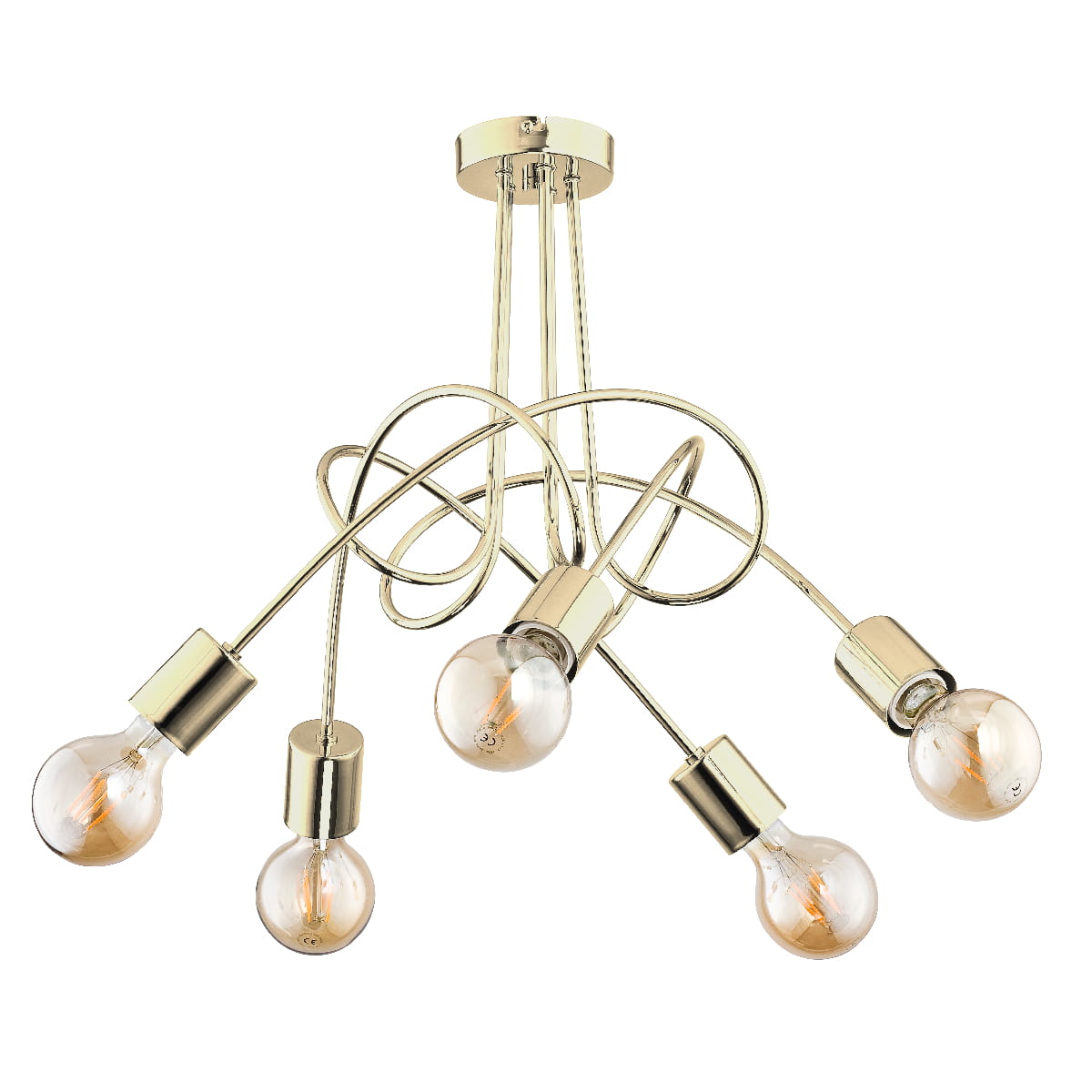 Ta wyjątkowa lampa sufitowa została wyposażona w pięć gniazd E27 przystosowanych do technologii LED. Dzięki temu zapewnia jasne, równomierne oświetlenie przy zachowaniu niskiego zużycia energii – ekologiczny wybór na miarę naszych czasów. Co ważne, elastyczność dobierania żarówek pozwala dostosować intensywność światła do Twoich potrzeb.
