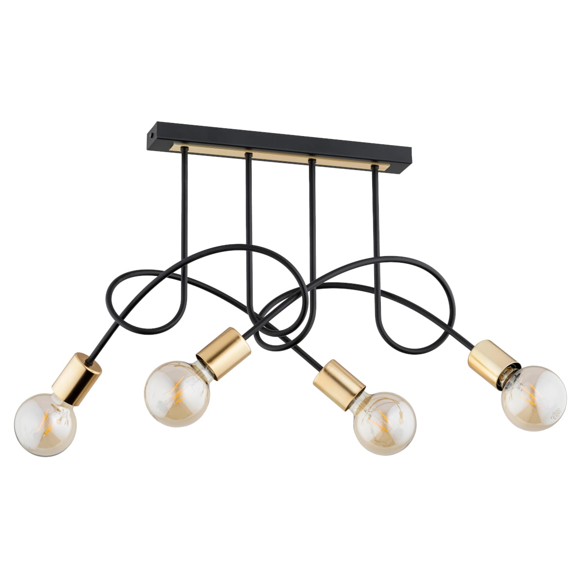 Stworzona z wytrzymałego metalu lampa wyróżnia się wyrazistą kolorystyką – głęboka czerń współgra tu harmonijnie z eleganckim złotem. To jak duet klasyki z nowoczesnością, który nadaje każdemu pomieszczeniu niepowtarzalnego charakteru. Wyobraź sobie tę lampę jako subtelną biżuterię dla twojego sufitu – jest ozdobna, lecz nigdy przytłaczająca.