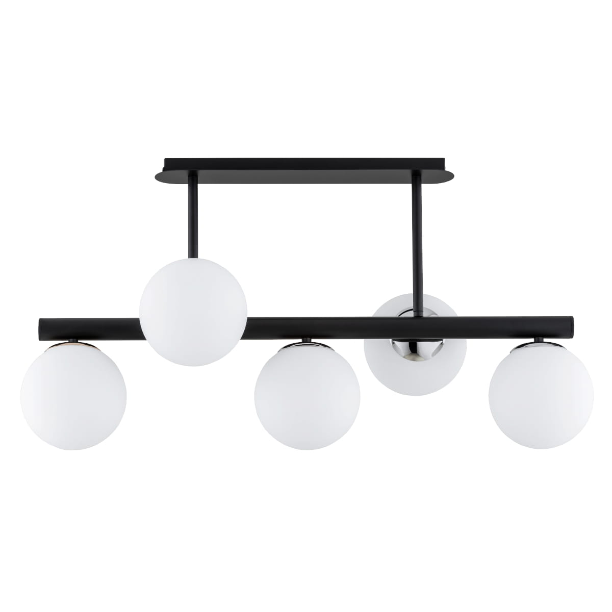 Lampa wyposażona jest w pięć źródeł światła typu E14 LED, które pozwalają uzyskać pełnię jasności bez obaw o wysokie rachunki za energię elektryczną. Każda z żarówek precyzyjnie umieszczona tak, by zapewnić optymalne rozproszenie światła na całej powierzchni pomieszczenia.