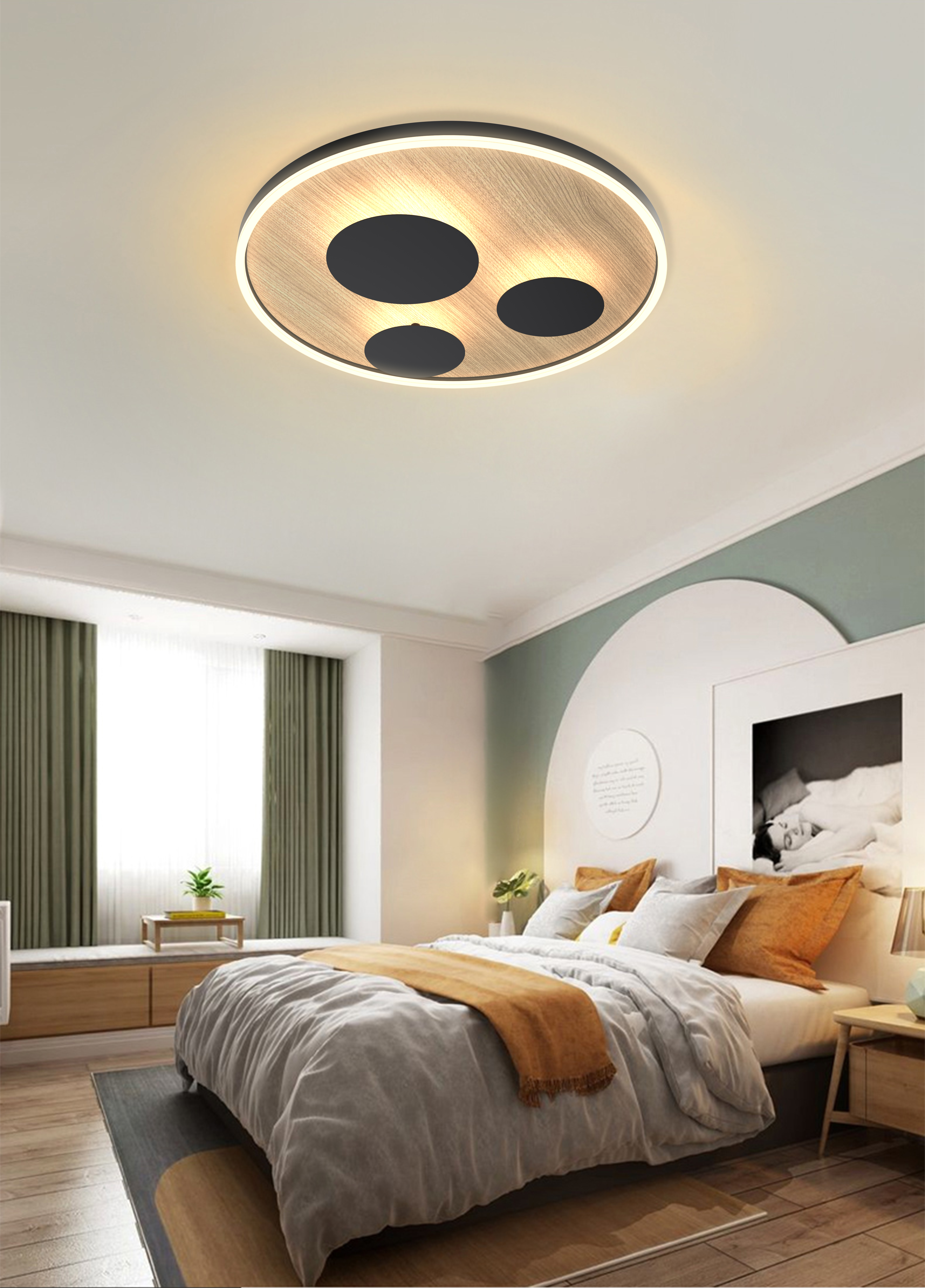 Dzięki możliwości trzystopniowego ściemniania, użytkownik może dostosować natężenie światła do własnych potrzeb oraz nastroju chwili. Natomiast imponujący strumień świetlny o wartości 4600 lumenów gwarantuje doskonałe oświetlenie nawet w dużych przestrzeniach. Rozmiar plafonu dostępny jest w dwóch średnicach – 60 cm i mniejszej wersji – co umożliwia dopasowanie do różnorodnych powierzchni sufitowych.