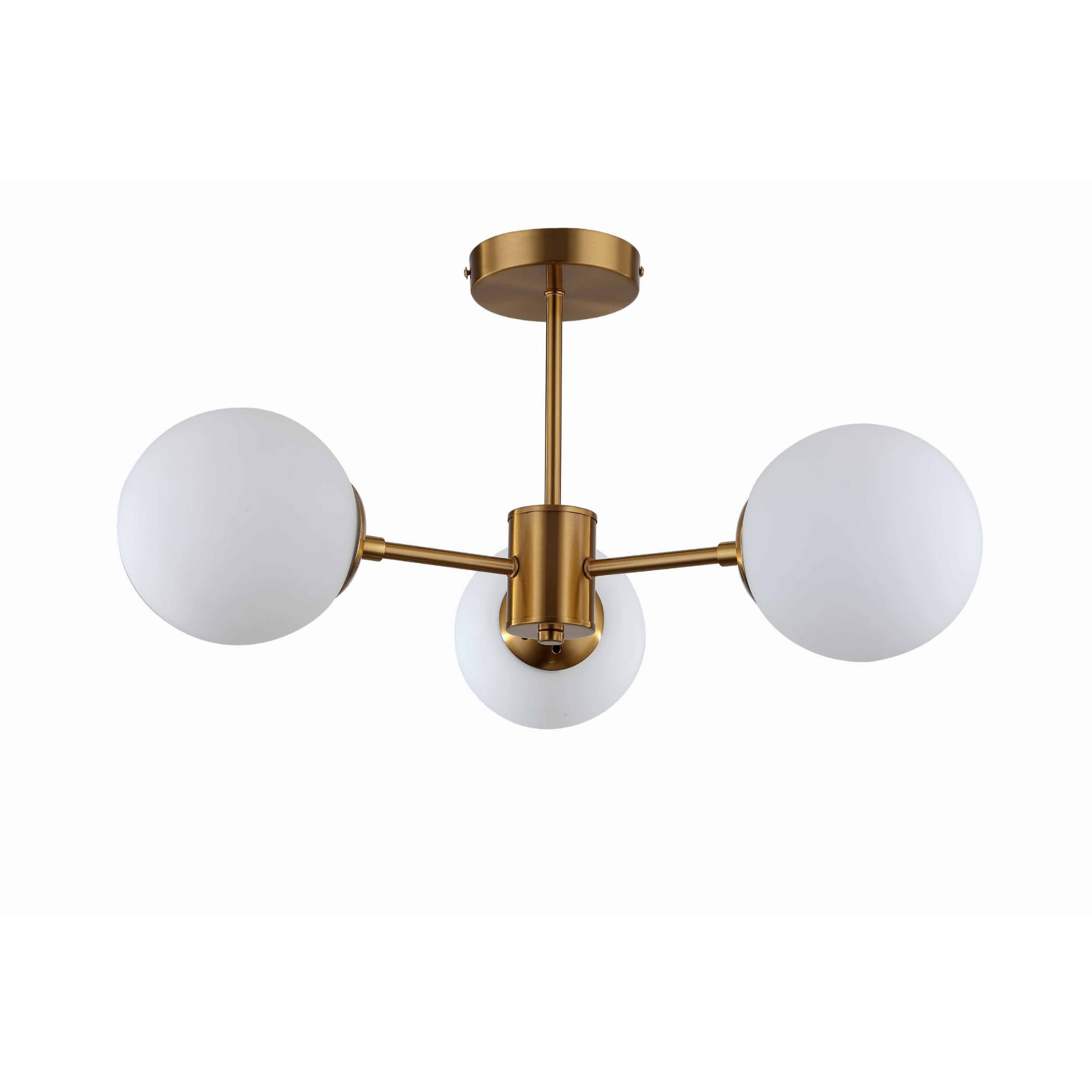 Złota kolorystyka stelaża nadaje lampie ekskluzywnego wyglądu, a neutralny biały kolor kloszy sprawia, że światło odbija się w subtelny sposób od powierzchni ścian czy sufitu. Lampa nie zawiera źródeł światła w zestawie, co daje możliwość wyboru preferowanych żarówek wedle własnych upodobań dotyczących temperatury barwowej światła.