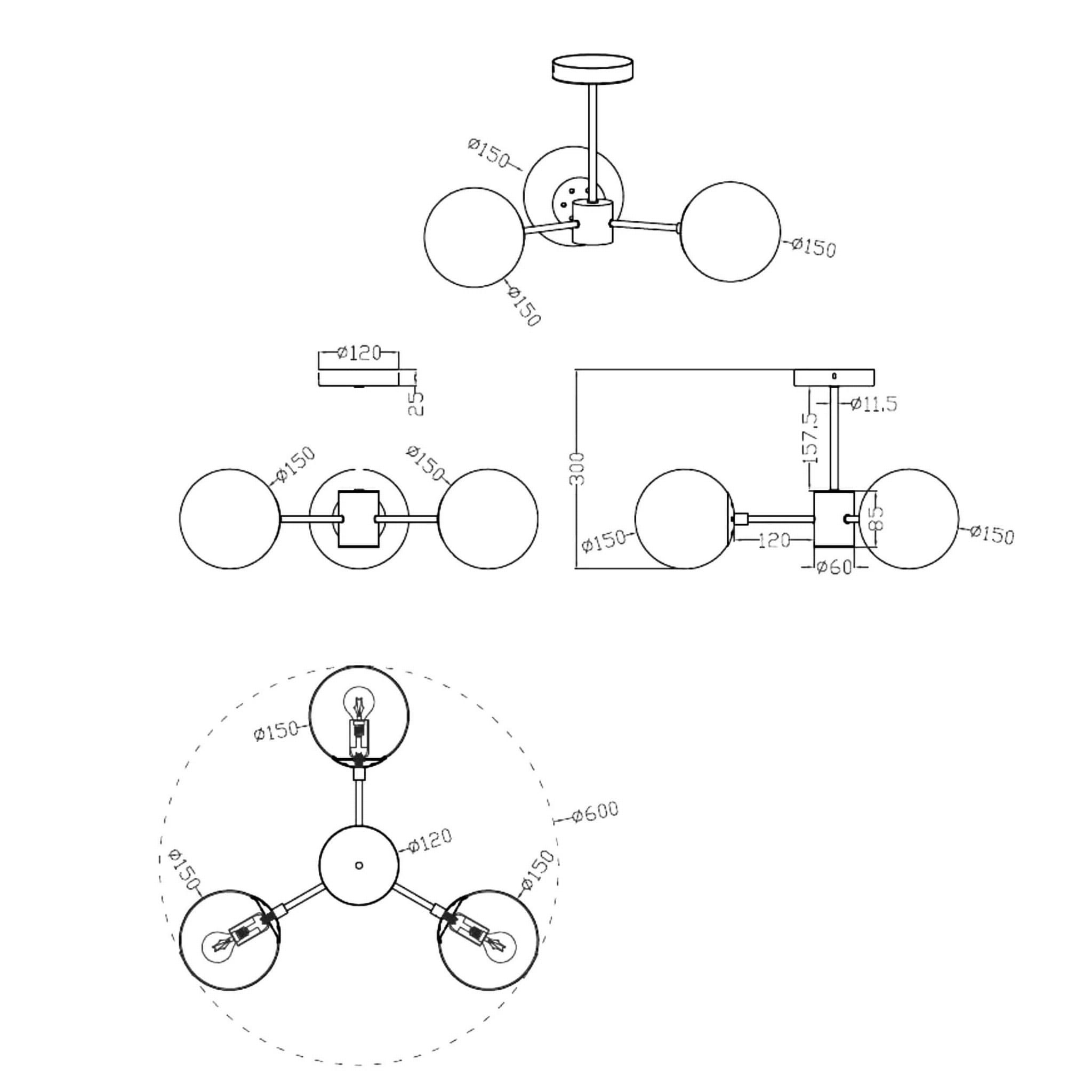 Oświetlenie zapewniane przez lampę Roma jest niezwykle delikatne i równomierne dzięki trzem białym kloszom wykonanym ze szkła. Te trzy punkty świetlne obsługują żarówki z gwintem E14, co gwarantuje optymalne oświetlenie przestrzeni nawet większych rozmiarów.