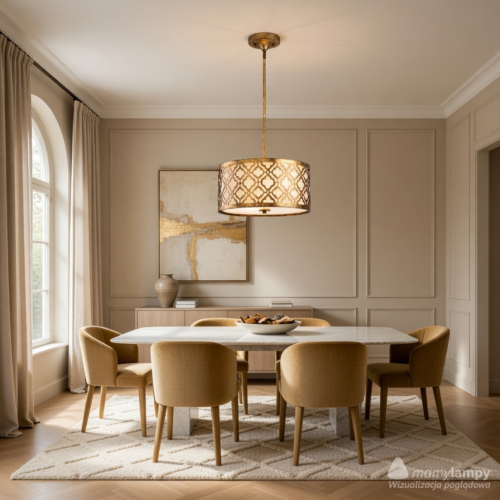 Wymiary lampy Arabella to 20,3 cm wysokości, 40,6 cm średnicy, z regulowaną długością zwisu od 34,3 cm do 132,1 cm. Dzięki temu możesz dostosować wysokość lampy do swoich potrzeb, co czyni ją idealną do różnych pomieszczeń, takich jak salon, jadalnia czy sypialnia.