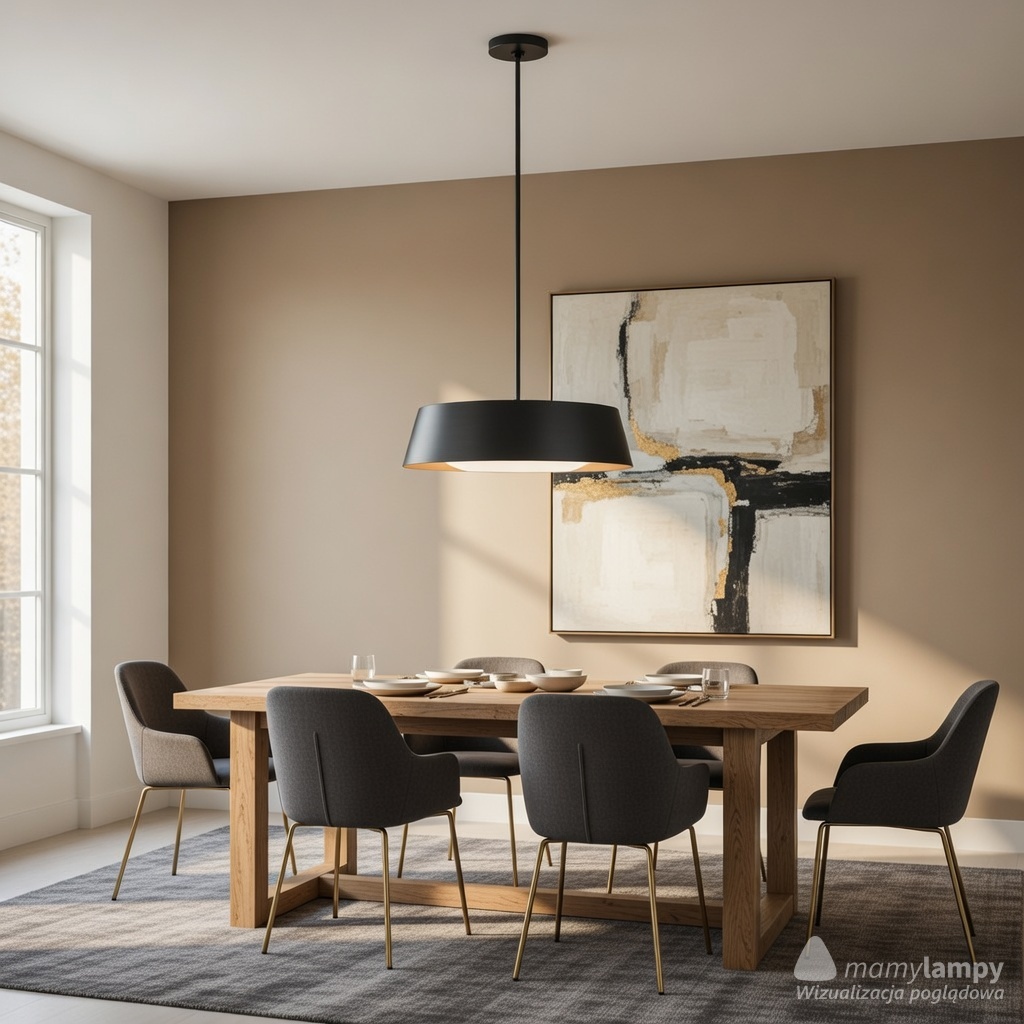Wykorzystanie materiału, jakim jest stal, zapewnia trwałość i wytrzymałość lampy. Czarny kolor dodaje elegancji i pasuje do wielu aranżacji wnętrz. Średnica lampy wynosząca 48,5 cm sprawia, że lampa jest odpowiednio widoczna, ale nie przytłacza swoją wielkością.