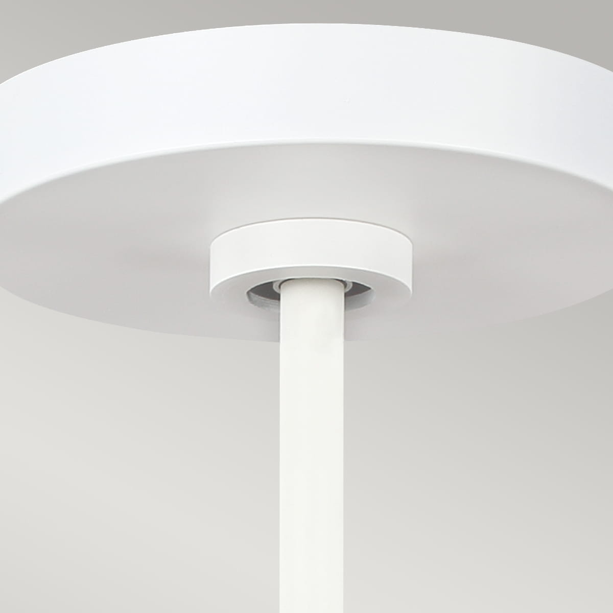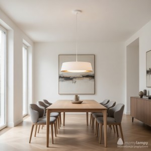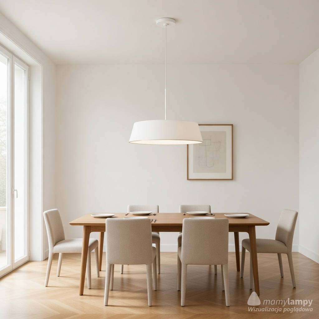 Lampa ma wymiary 13,7 cm wysokości, 48,5 cm średnicy, a długość zwisu można regulować od 33 cm do 155 cm, dzięki czemu możesz dostosować ją do swoich potrzeb. Stalowy materiał, z którego wykonana jest lampa, gwarantuje jej trwałość, a biały kolor dodaje elegancji i świeżości.