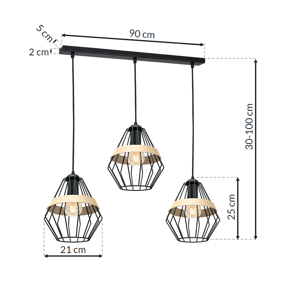 Lampa wisząca CLIFF Milagro 3xE27 60W Metal + Drewno Czarny – Elegancja i Funkcjonalność