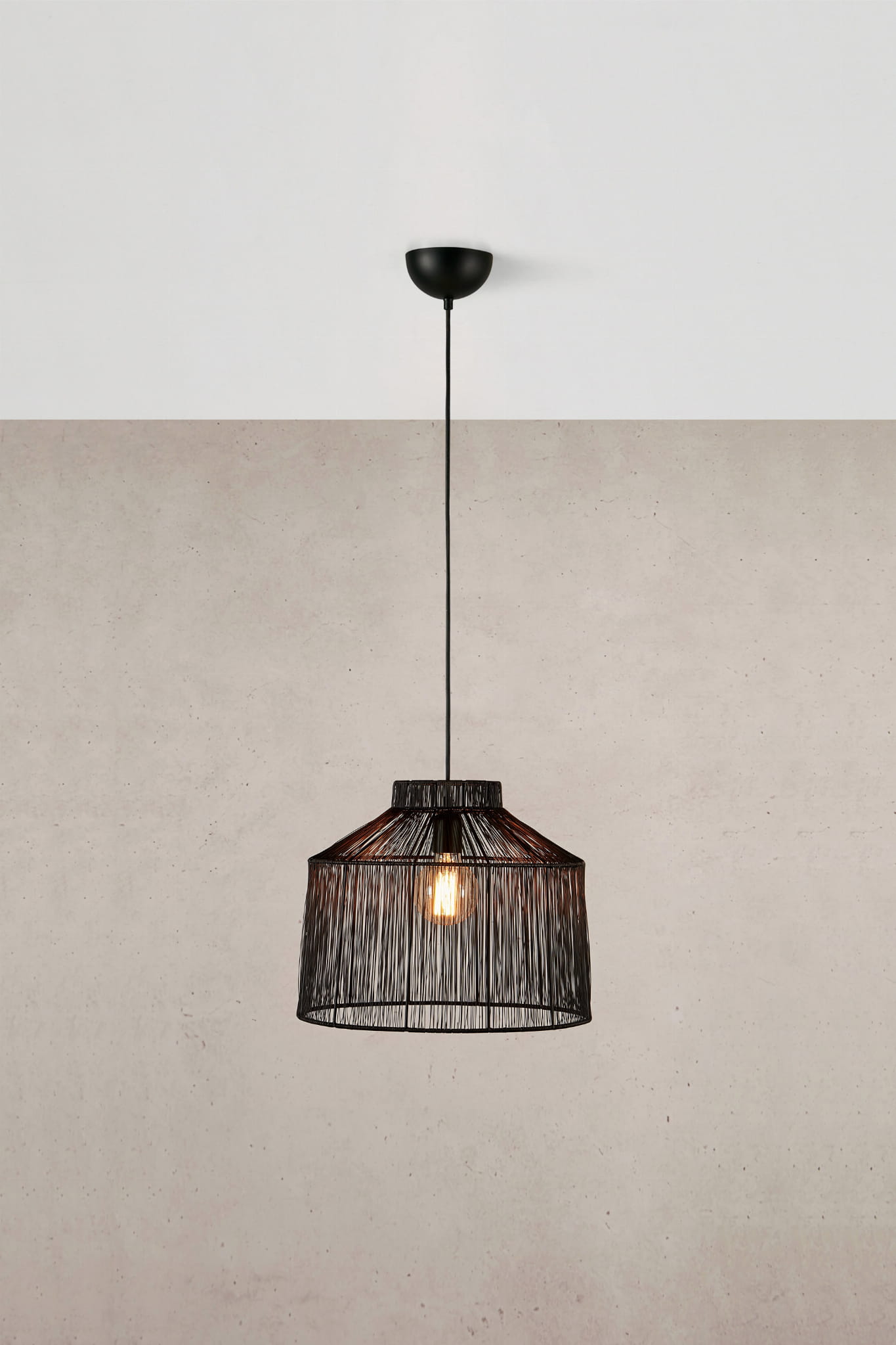 Dzięki wysokości całkowitej wynoszącej 140 cm oraz średnicy klosza 42 cm, lampa oferuje optymalne rozproszenie światła. Czarny tekstylny kabel dodaje jej subtelnej elegancji, podkreślając jakość wykonania i dbałość o detale. Klasa ochrony IP20 zapewnia bezpieczeństwo użytkowania w standardowych warunkach domowych.