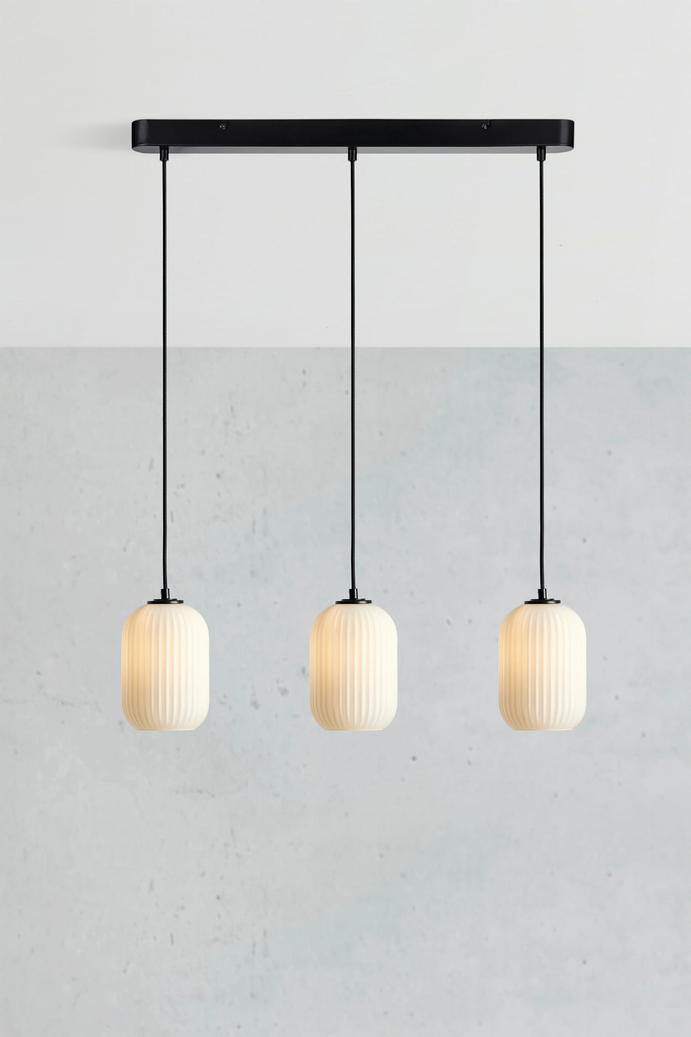 Lampa Cava wyposażona jest w przewód o długości 150 cm wykonany z czarnego materiału tekstylnego. Taki wybór materiałów nie tylko podkreśla jej stylowy wygląd, ale także zwiększa jej wytrzymałość i odporność na uszkodzenia mechaniczne. Wymiary całkowite lampy to 72 cm wysokości i 14 cm średnicy kloszy.