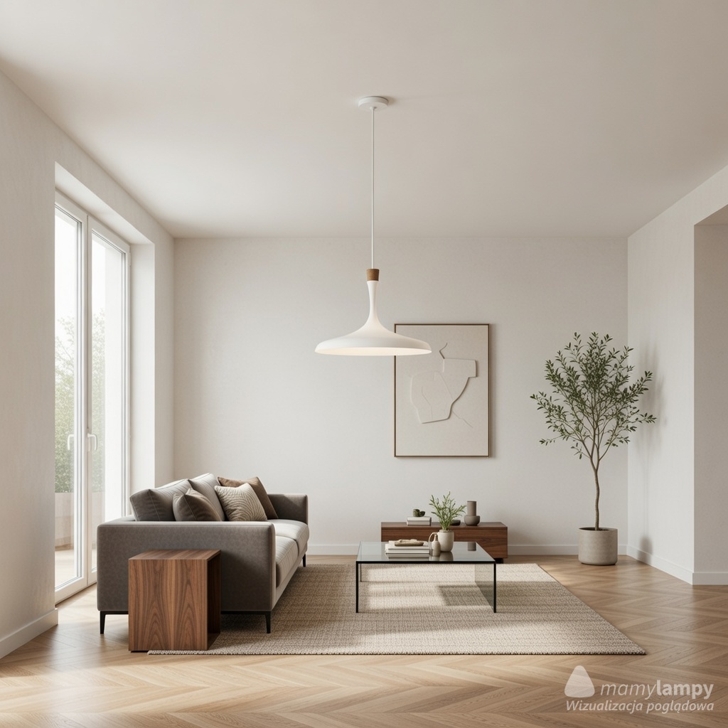 Lampa wykonana jest ze stali w kolorze białym, co sprawia, że pasuje do wielu różnych aranżacji. Dzięki temu, że jest regulowana, możesz dostosować wysokość lampy do swoich potrzeb – minimalna długość zwisu to 53,2 cm, maksymalna zaś 175,2 cm. Średnica lampy wynosi 48,2 cm, co sprawia, że światło rozchodzi się równomiernie po całym pomieszczeniu.