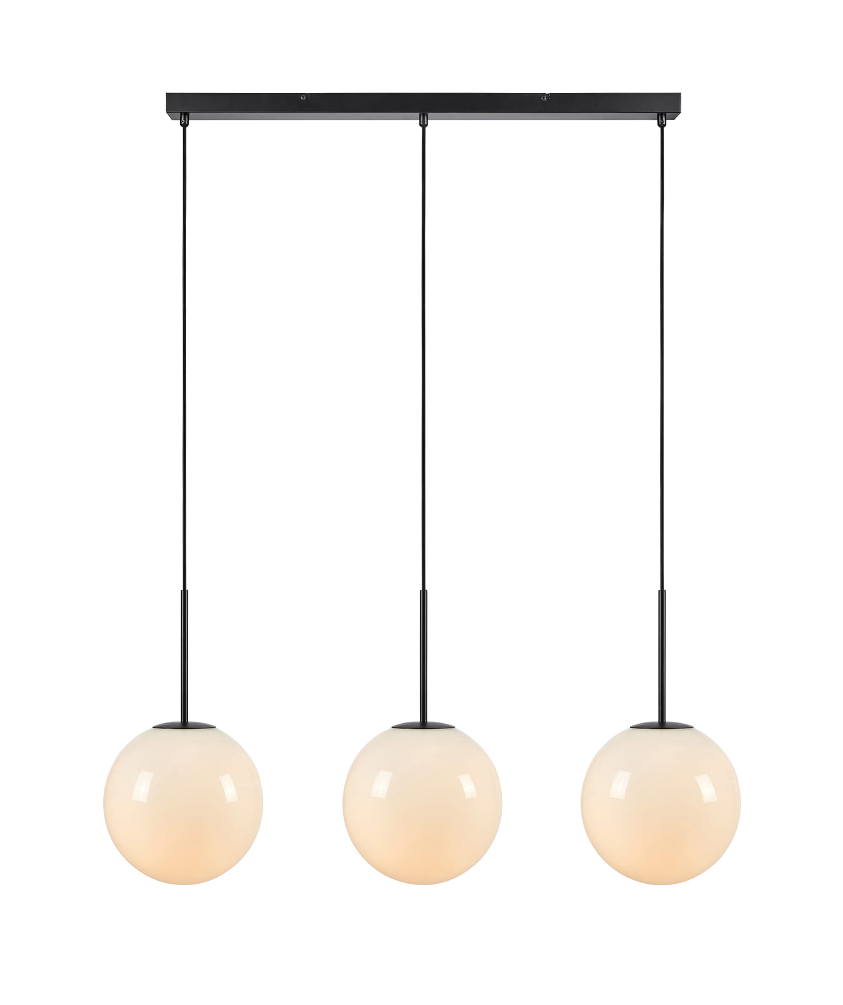 Precyzyjne wykonanie z wysokiej jakości materiałów sprawia, że lampa wyróżnia się trwałością oraz odpornością na codzienne użytkowanie. Kluczowym elementem konstrukcji jest solidna metalowa obudowa w kolorze czarnym, która nadaje całości nowoczesnego charakteru. Klosze wykonane z białego szkła nie tylko skutecznie rozpraszają światło, ale również dodają lampie elegancji.