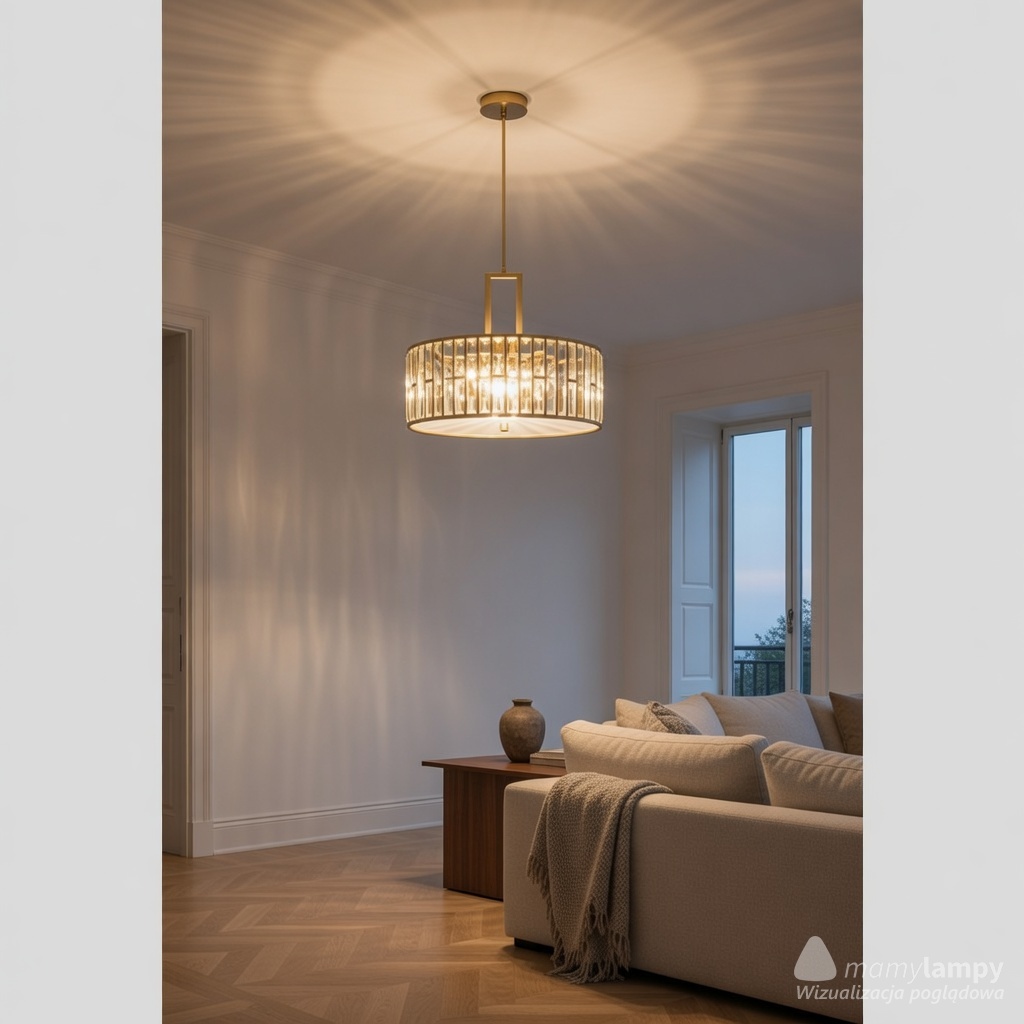 Lampa wykonana jest z wysokiej jakości stali w kolorze złotym, co nadaje jej luksusowego wyglądu. Jej wysokość wynosi 40 cm, a średnica to 54 cm, co sprawia, że jest to idealny wybór do większości pomieszczeń. Co więcej, lampa ma regulowaną wysokość, dzięki czemu możesz dostosować ją do swoich potrzeb. Minimalna długość zwisu to 62,2 cm, a maksymalna to aż 154,3 cm, co pozwala na optymalne rozmieszczenie źródła światła.