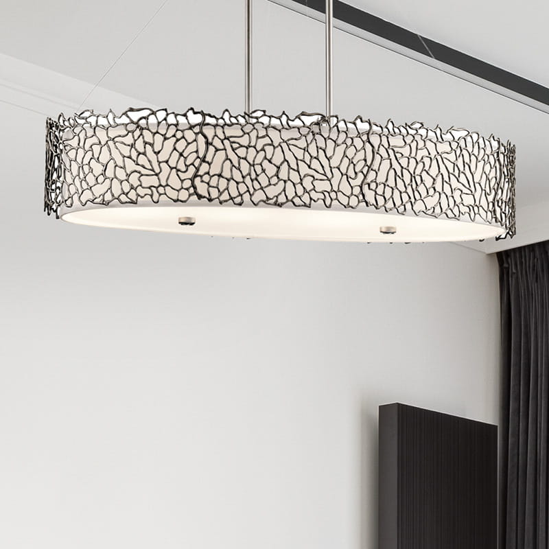Lampa wisząca Silver Coral marki Elstead Lighting to prawdziwy klejnot w świecie nowoczesnego designu oświetleniowego. Stworzona z myślą o tych, którzy cenią sobie perfekcję wykonania i unikalne detale, lampa ta przyciąga wzrok swoją elegancką formą oraz wyjątkowym srebrnym wykończeniem. Jej niepowtarzalny design nawiązuje do piękna podmorskiej flory, wprowadzając odrobinę magii i luksusu do każdego wnętrza.