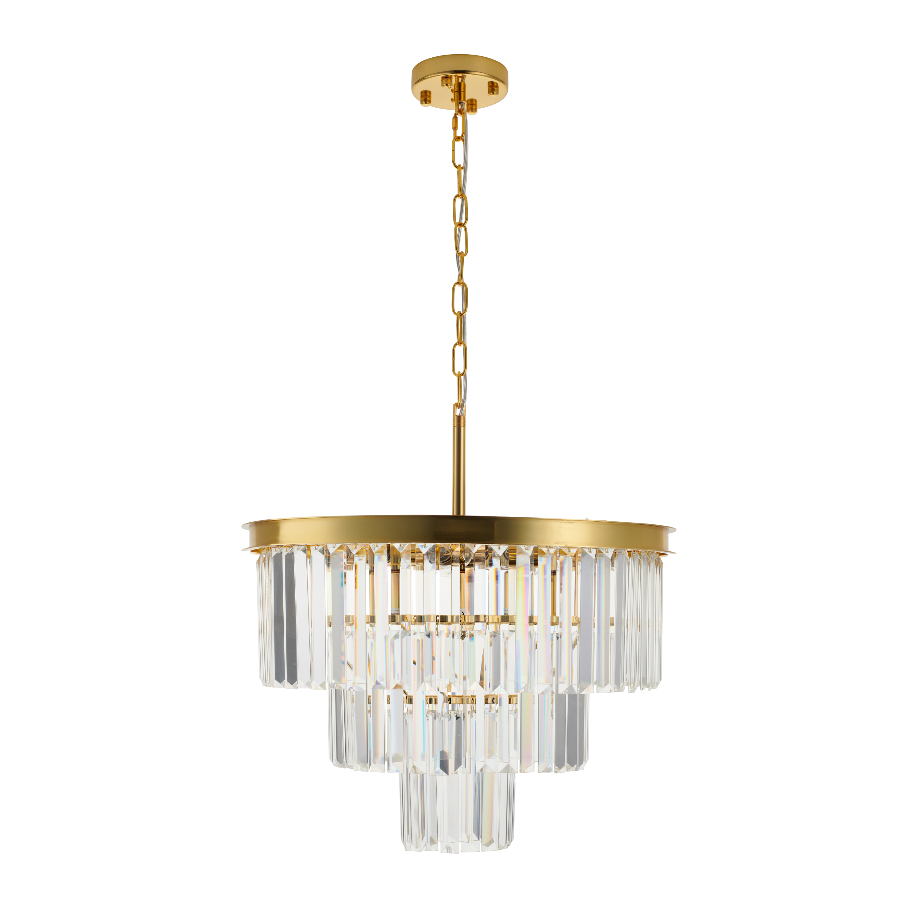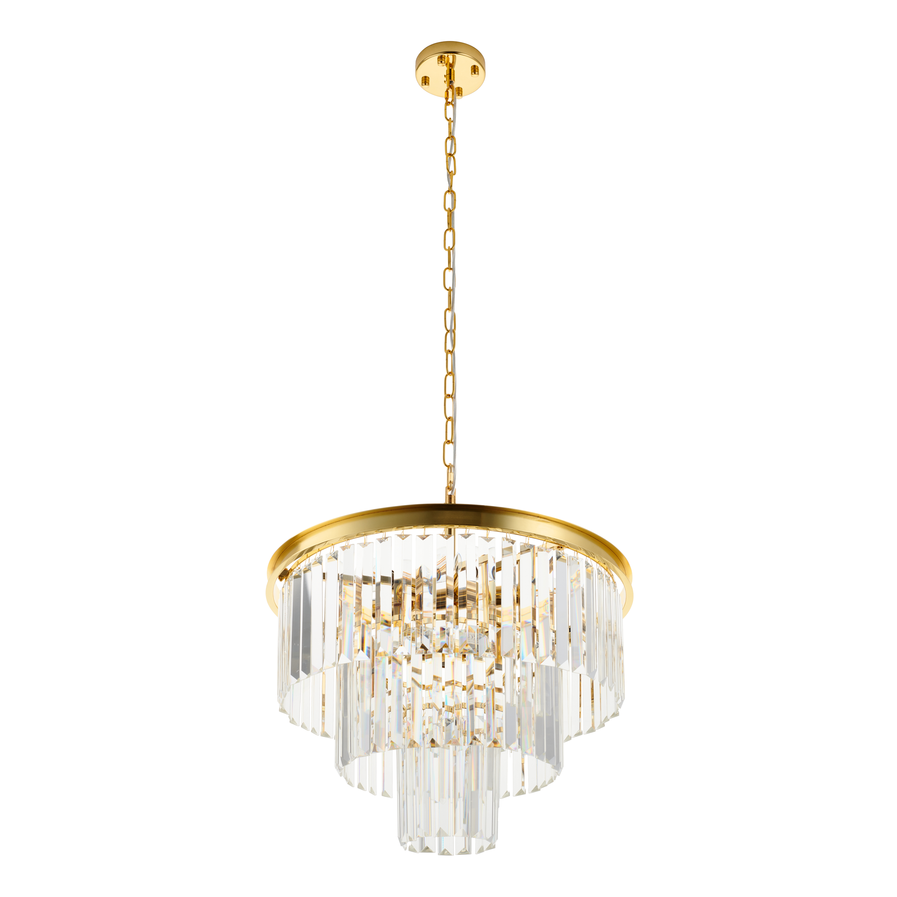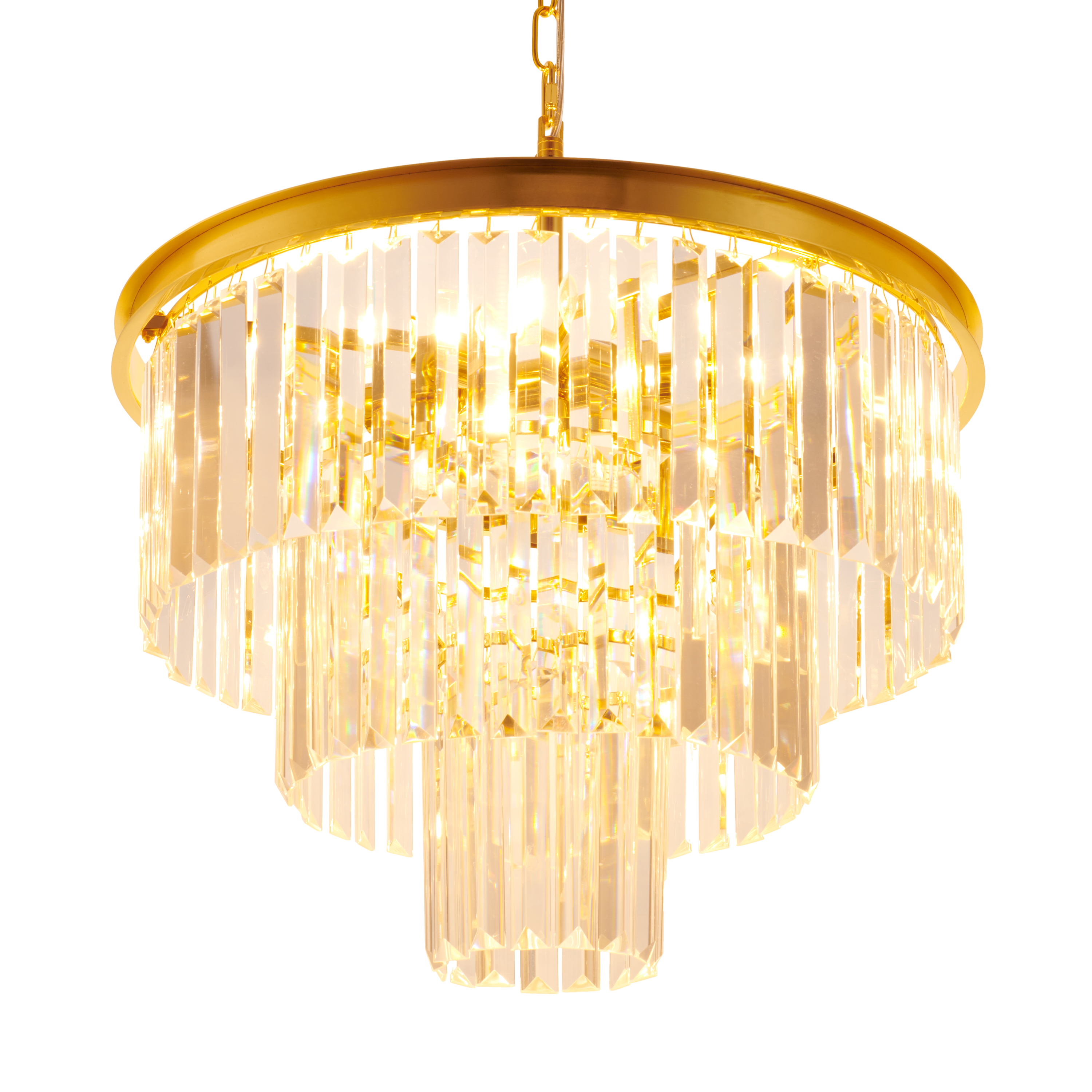 Solidna konstrukcja z użyciem stali gwarantuje trwałość produktu oraz odporność na uszkodzenia mechaniczne. Luksusowe kryształy szklane K9 nie tylko dodają elegancji, ale również efektywnie rozpraszają światło, tworząc niezwykłe wizualne efekty. Zastosowanie złotych elementów w lampie doskonale harmonizuje z nowoczesnymi jak i klasycznymi stylami aranżacji wnętrz.