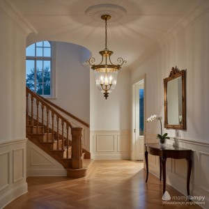 Wyjątkowe wrażenie elegancji oraz luksusu przenoszą się na całe wnętrze dzięki lampie wiszącej Cambridge od Elstead Lighting. To prawdziwy klejnot wśród produktów oświetleniowych, który nie tylko oświetli każdy zakamarek Twojego domu, ale przede wszystkim stanie się jego ozdobą. Wykonana z mosiądzu w złotym kolorze, lampa łączy w sobie tradycyjne rzemiosło z nowoczesnym wzornictwem, tworząc mebel, który przyciągnie wzrok i zachwyci swoją unikalną prezencją.