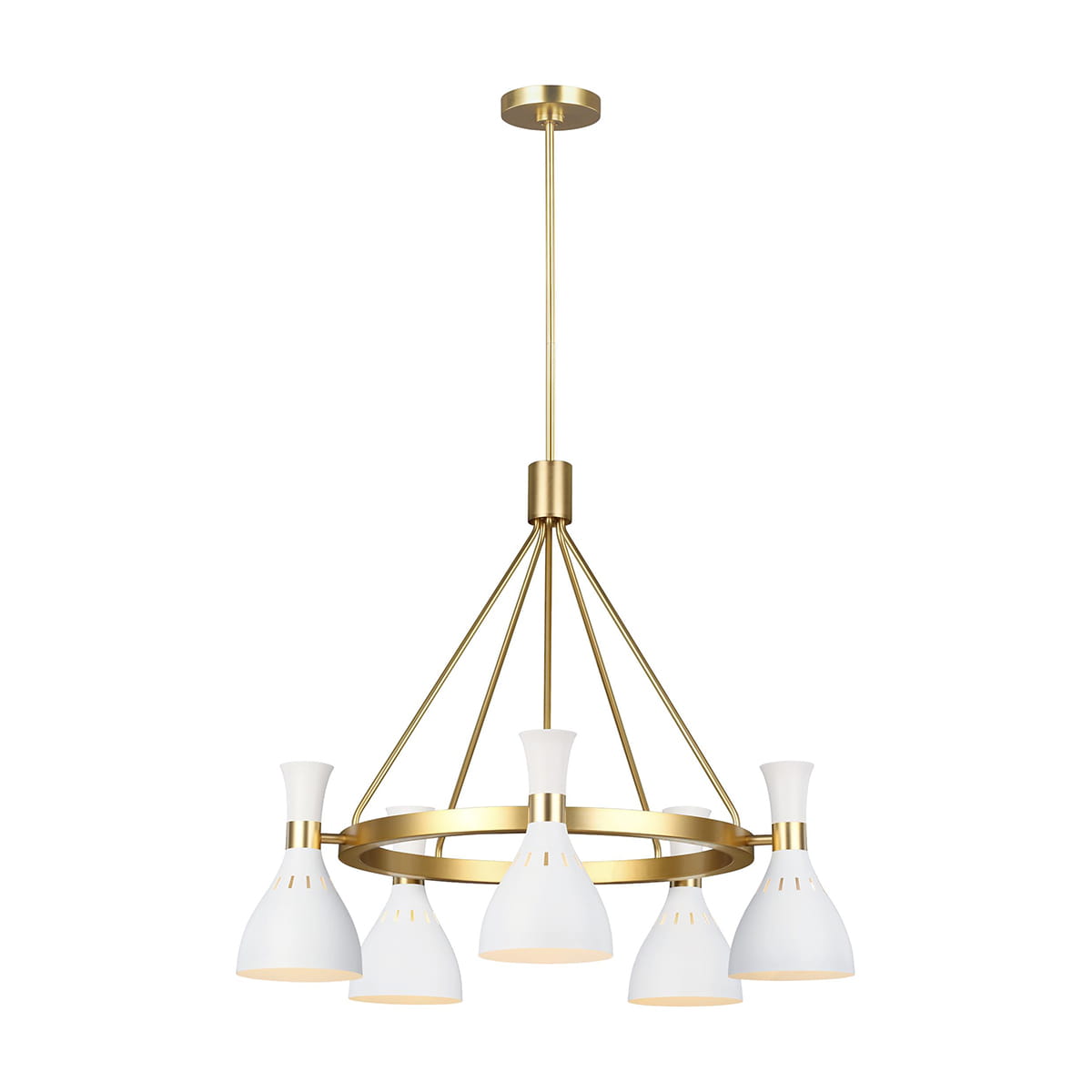 Lampa Joan wyposażona jest w pięć źródeł światła o mocy 60W każde, co umożliwia jej odpowiednie oświetlenie zarówno mniejszych, jak i większych pomieszczeń. Oprawy pasują do standardowych żarówek E27, co pozwala na łatwe dostosowanie intensywności i odcienia światła do indywidualnych preferencji. Dzięki temu, lampa ta jest idealna na bardziej formalne okazje, jak i na co dzień - tworząc przytulną atmosferę podczas rodzinnych posiłków czy wieczorów z przyjaciółmi.