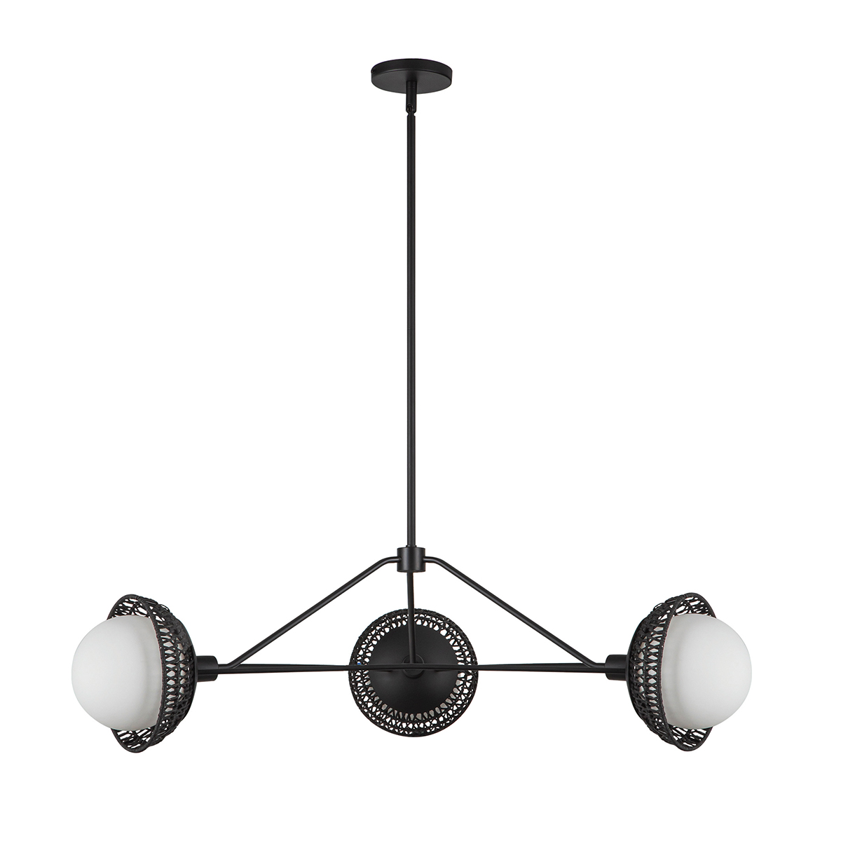 Estetyka lampy Żyrandol Perth sprawia, że znakomicie komponuje się z różnorodnymi stylami dekoracyjnymi – od loftowych aż po skandynawskie czy boho. Neutralna paleta barw – czarnego metalu i naturalnego rattanu współgra z wieloma schematami kolorystycznymi i meblami wykonanymi z różnorodnych materiałów.
