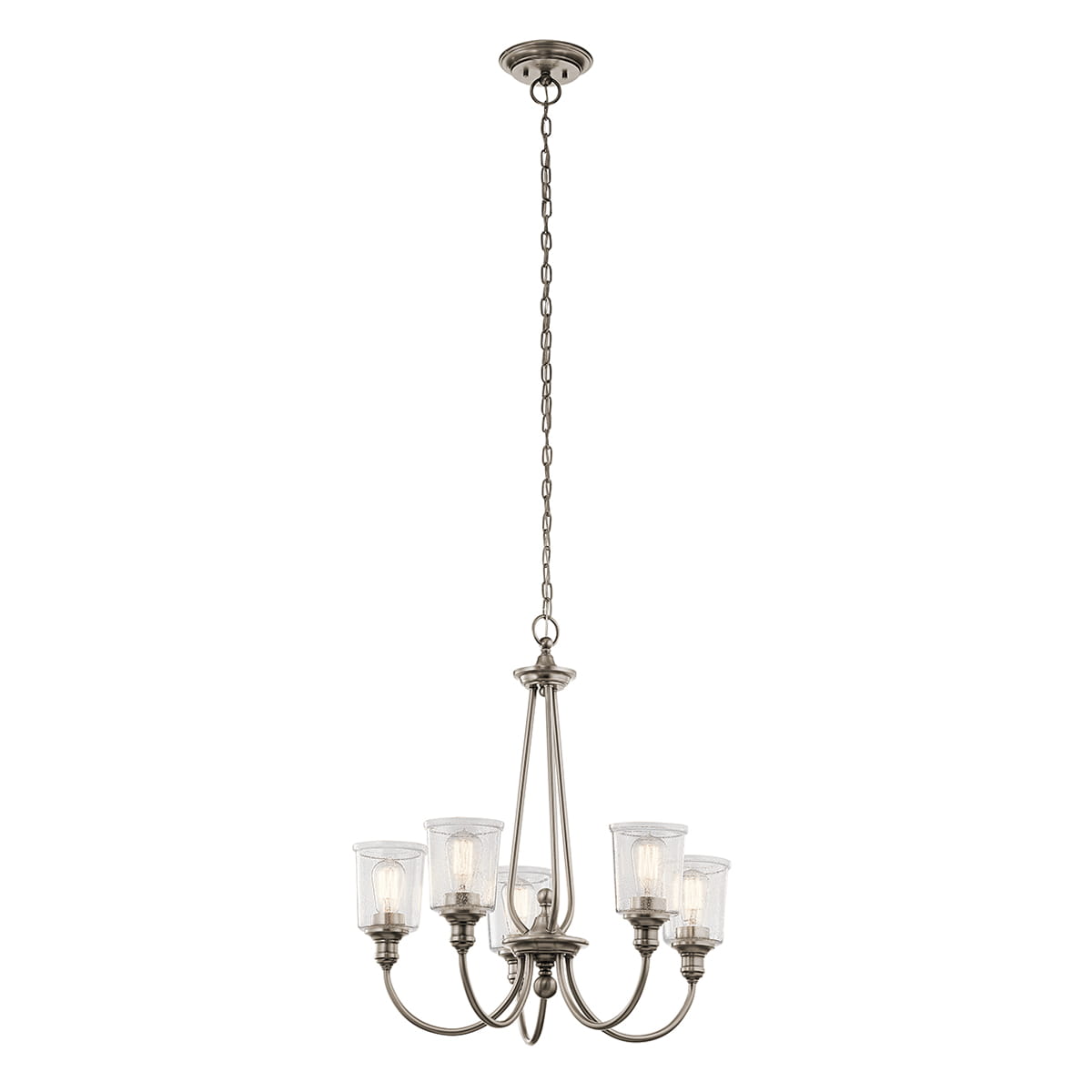 Pięć punktów świetlnych ze standardowymi gwintami E27 zapewnia oświetlenie o mocy 60W każdy, co pozwala na doskonałe rozświetlenie przestrzeni o dużej powierzchni. Konstrukcja wykonana z trwałej stali, pokrytej szlachetnym, srebrnym wykończeniem, dodaje jej lekkości i nowoczesności. Wysoka jakość materiałów gwarantuje nie tylko trwałość produktu, ale także jego niezmienne piękno przez wiele lat użytkowania. To inwestycja w styl i klasę, która nigdy nie wychodzi z mody.