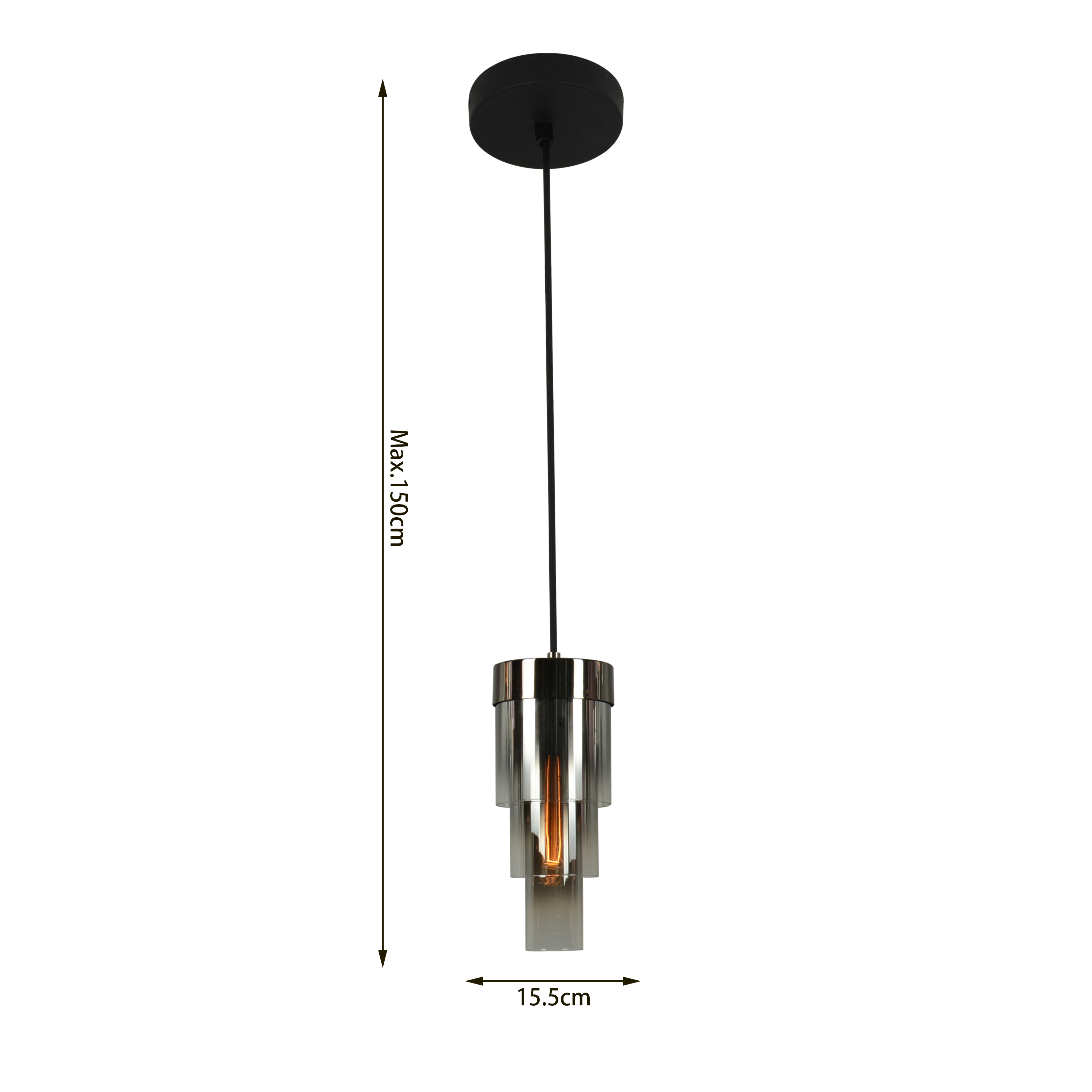 Zawieszenie lampy można regulować do długości 150 cm, co pozwala na idealne dostosowanie wysokości do wymagań danej przestrzeni. Średnica klosza wynosi 16 cm, co sprawia, że lampa jest proporcjonalna do większości standardowych rozmiarów pomieszczeń mieszkalnych.