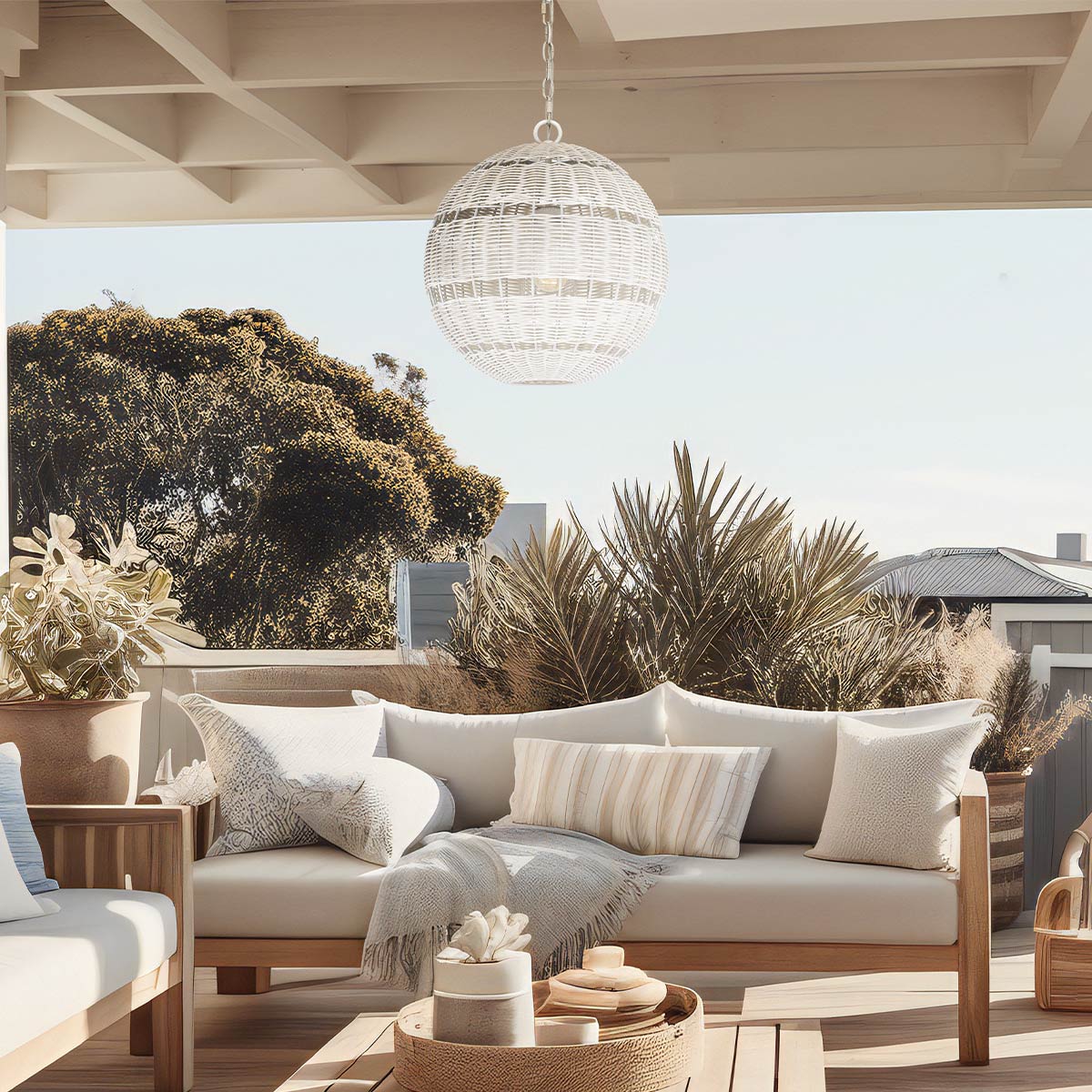 Z uwagi na swoje nowoczesne wzornictwo oraz neutralną kolorystykę lampa wisząca Lindendale sprawdzi się zarówno w nowoczesnych jak i bardziej tradycyjnych aranżacjach przestrzeni zewnętrznych. Jej subtelny design współgra zarówno z minimalistycznymi aranżacjami jak i bardziej naturalistycznie zaaranżowanymi przestrzeniami.