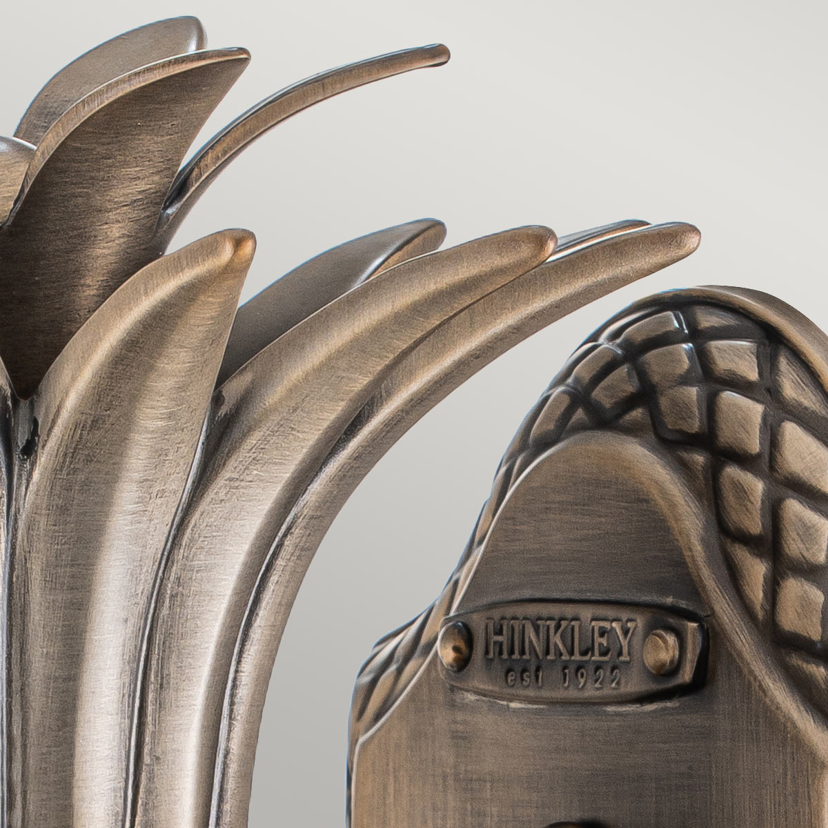 Wykonana z wysokiej jakości aluminium i przezroczystego szkła optycznego, ta lampa jest odporna na korozję dzięki specjalnej powłoce oraz trzy-letniej gwarancji antykorozyjnej. Oksydowany brązowy kolor nadaje jej szlachetny wygląd, który łatwo wpasuje się w każde otoczenie.