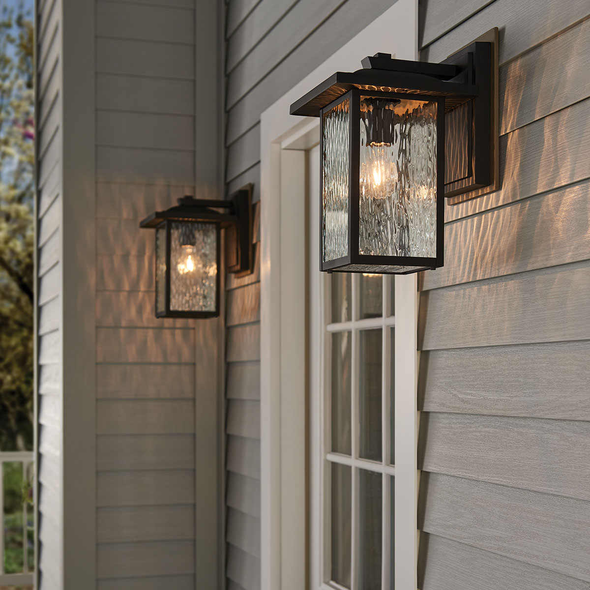 Lampa zewnętrzna Średnia latarnia naścienna Cappanna Elstead Lighting 1xE27 60W Aluminium, przezroczyste szkło o strukturze wodnej Czarny