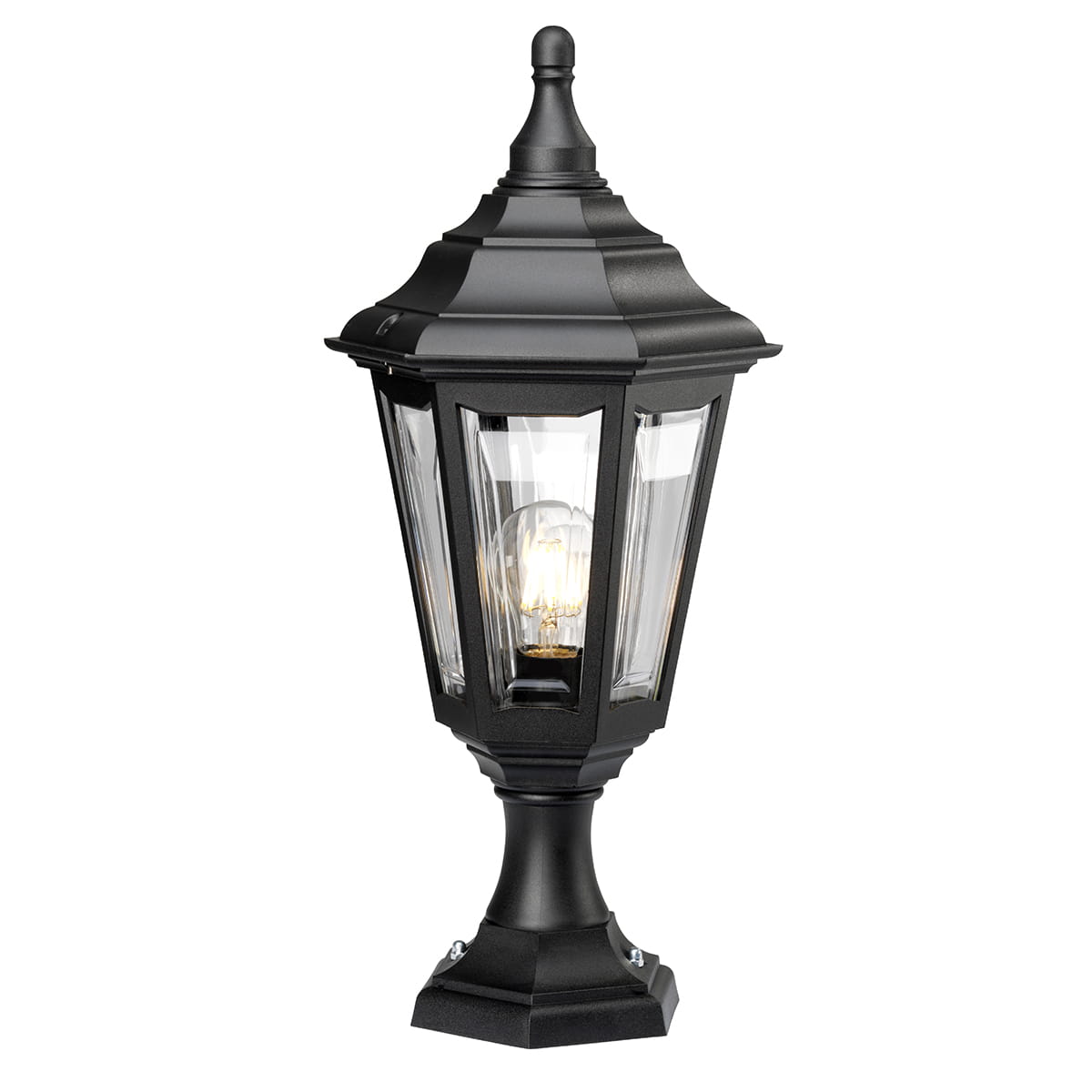 Latarnia ogrodowa Elstead Lighting Kinsale KINSALE-PED-POR IP44 1xE27 Tworzywo Czarny posiada klasyczny kolor czarny, który pasuje niemal do każdego stylu i kolorystyki ogrodu. Trzonek lampy to standardowe E27, co oznacza, że można w niej zastosować żarówkę o mocy do 100W. Lampę cechuje jedno źródło światła, dzięki czemu zapewnia optymalną ilość światła.