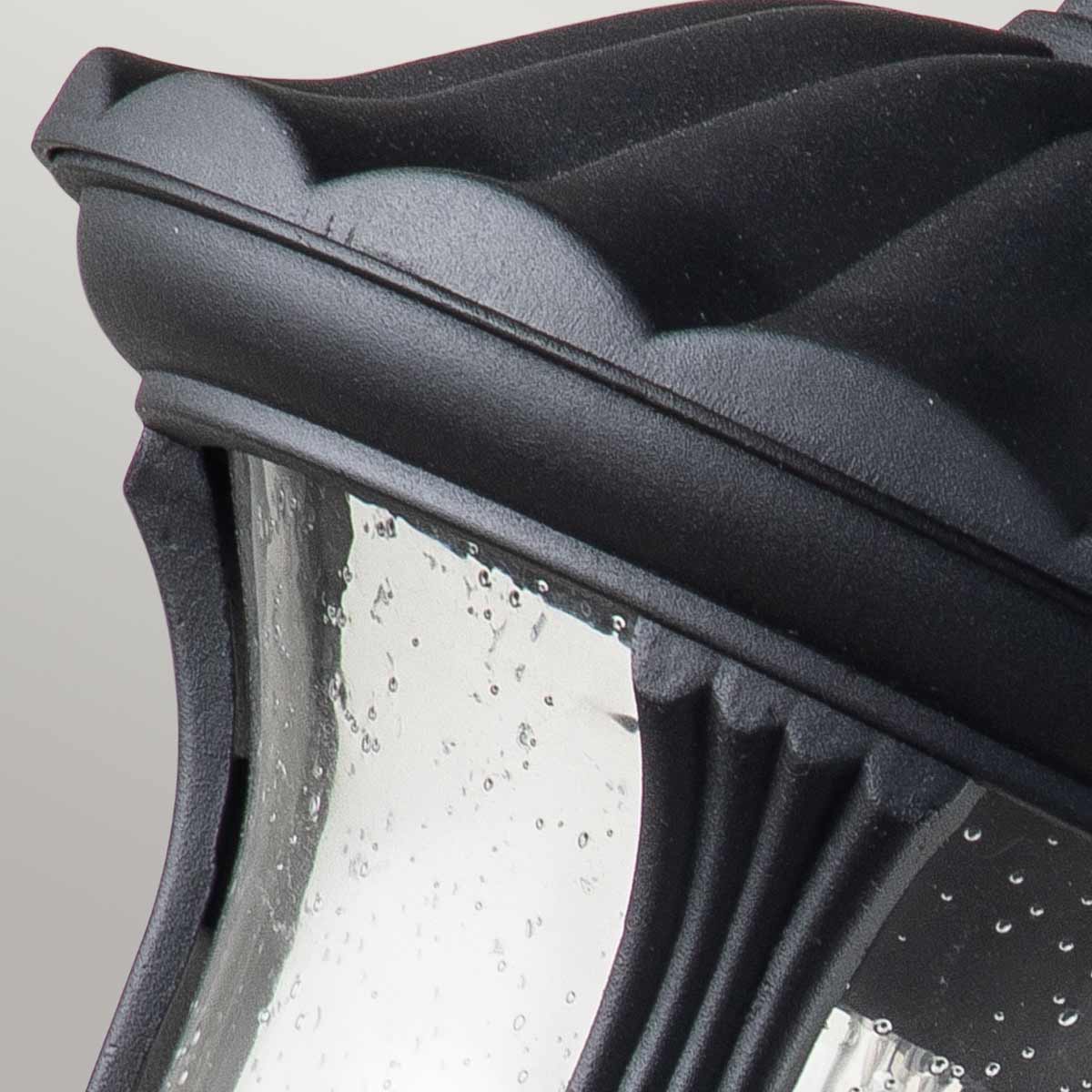 Chicago od Elstead Lighting to kwintesencja elegancji i funkcjonalności, którą przeniesiono do współczesnych rozwiązań oświetleniowych. Inspirowana stylem latarni przełomu XIX i XX wieku, mała latarnia naścienna z tej kolekcji stanowi idealne połączenie klasyki z nowoczesnością. Wyróżniają ją trwałe materiały – odlewane aluminium oraz szkło z subtelnymi bąbelkami powietrza, które dodają jej niepowtarzalnego charakteru. Dzięki teksturowanej czerni latarnia świetnie komponuje się z różnorodnymi aranżacjami zewnętrznymi, od historycznych fasad po nowoczesne domy.